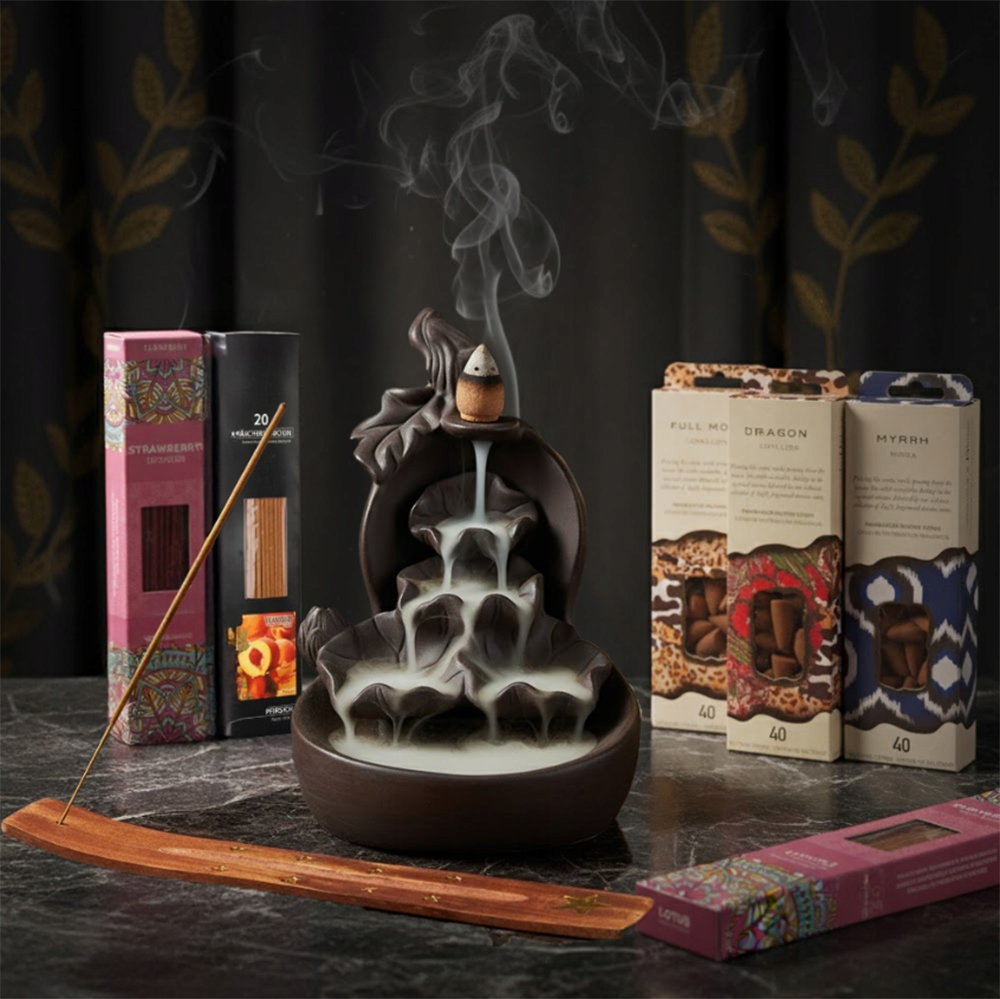 Эксклюзивный подарочный набор - Камин-водопад Ароматические палочки Деревянная подставка + ДЕКОРАТИВНАЯ КОРОБКА