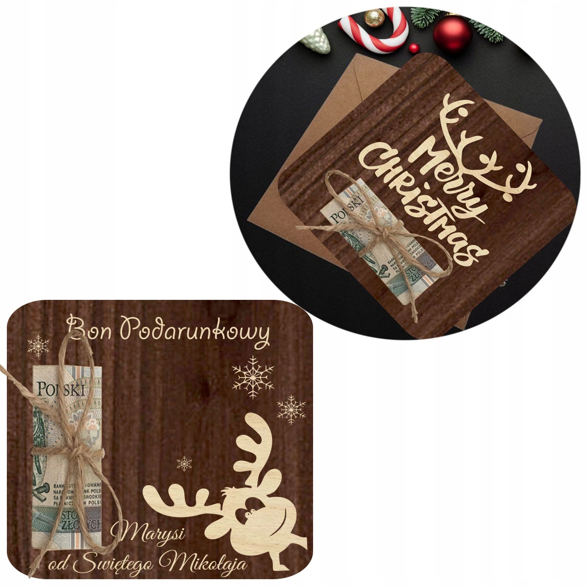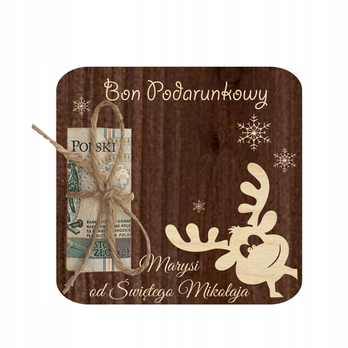 Різдвяний подарунковий ваучер, дерев'яна подарункова картка, коричневий ваучер