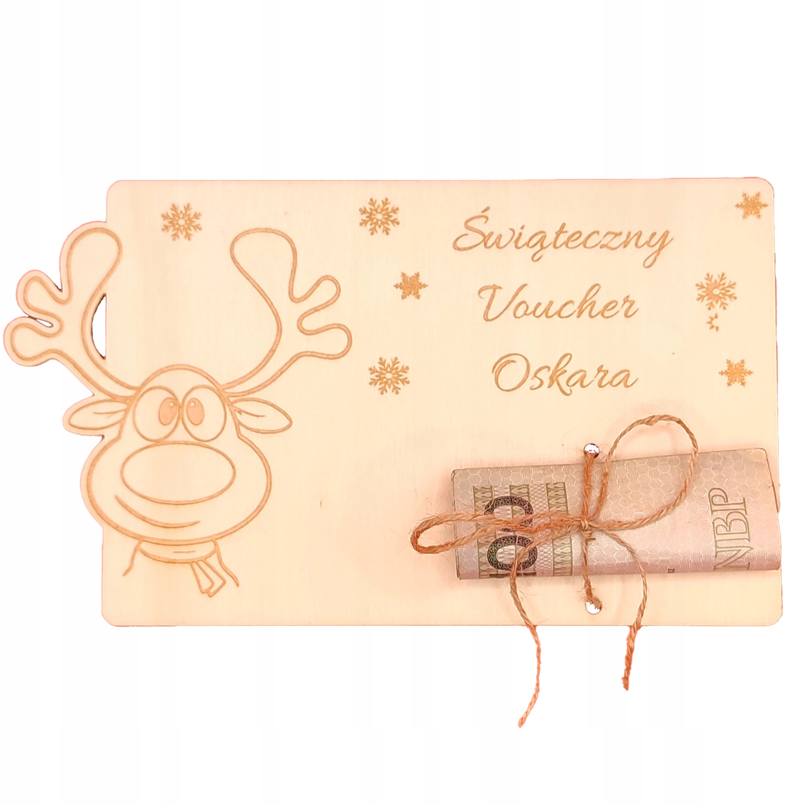 РОЖДЕСТВЕНСКИЙ ПОДАРОЧНЫЙ ВАУЧЕР, ДЕРЕВЯННЫЙ ВАУЧЕР, ПОДАРОЧНАЯ КАРТА С ОЛЕНЯМИ
