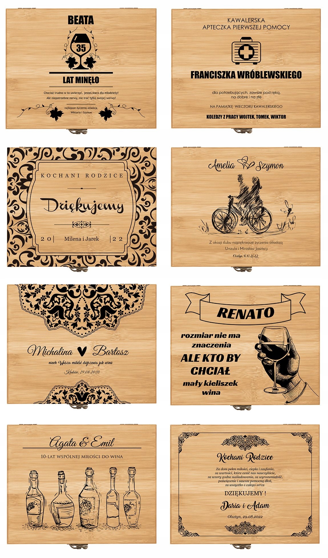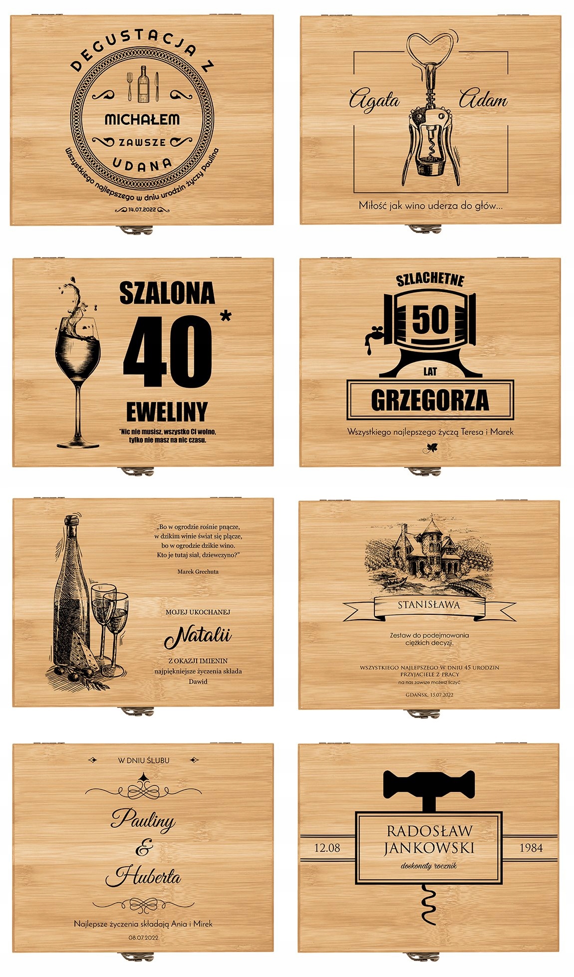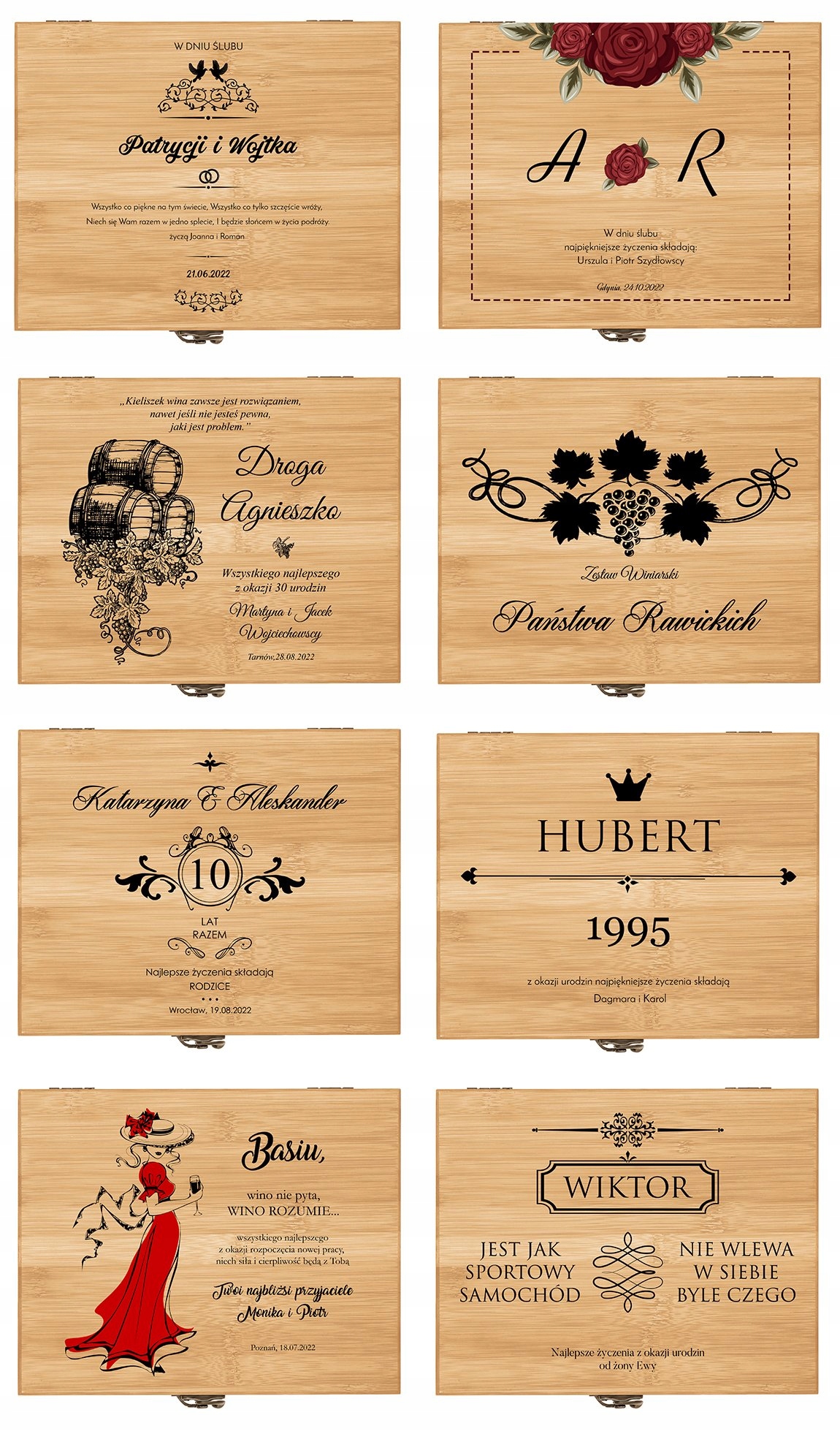 Ищете элегантный подарок, подходящий ценителю вина? Хорошая идея – это, конечно, бутылка любимого напитка. Однако чтобы подарок был интересным и функциональным, стоит дополнить его чем-то еще. Мы подготовили для вас идеальное дополнение к подарку – изысканную бамбуковую шкатулку с профессиональным набором винных аксессуаров. В комплект входят: открывалка для официанта, привлекательные пробки, термометр для измерения температуры вина и кольцо на горлышко бутылки, чтобы не капало. Элементы комплекта дополнительно декорированы бамбуковой отделкой. На крышке коробки мы напечатаем индивидуальное поздравление по вашему выбору. У вас есть возможность подарить любимому человеку что-то совершенно уникальное!
