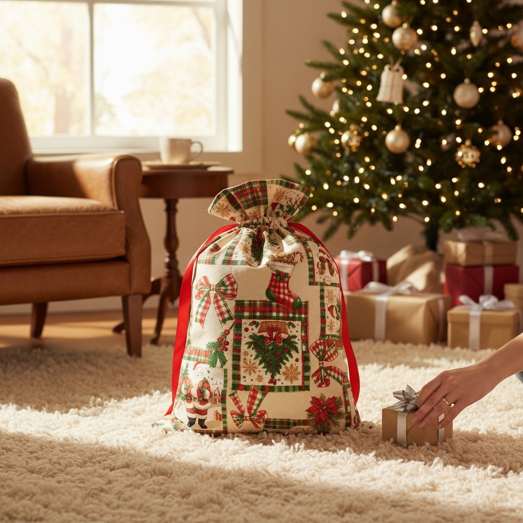 ✨ ПОДАРОЧНАЯ СУМКА DOMAREX - элегантная многоразовая рождественская упаковка из декоративной ткани