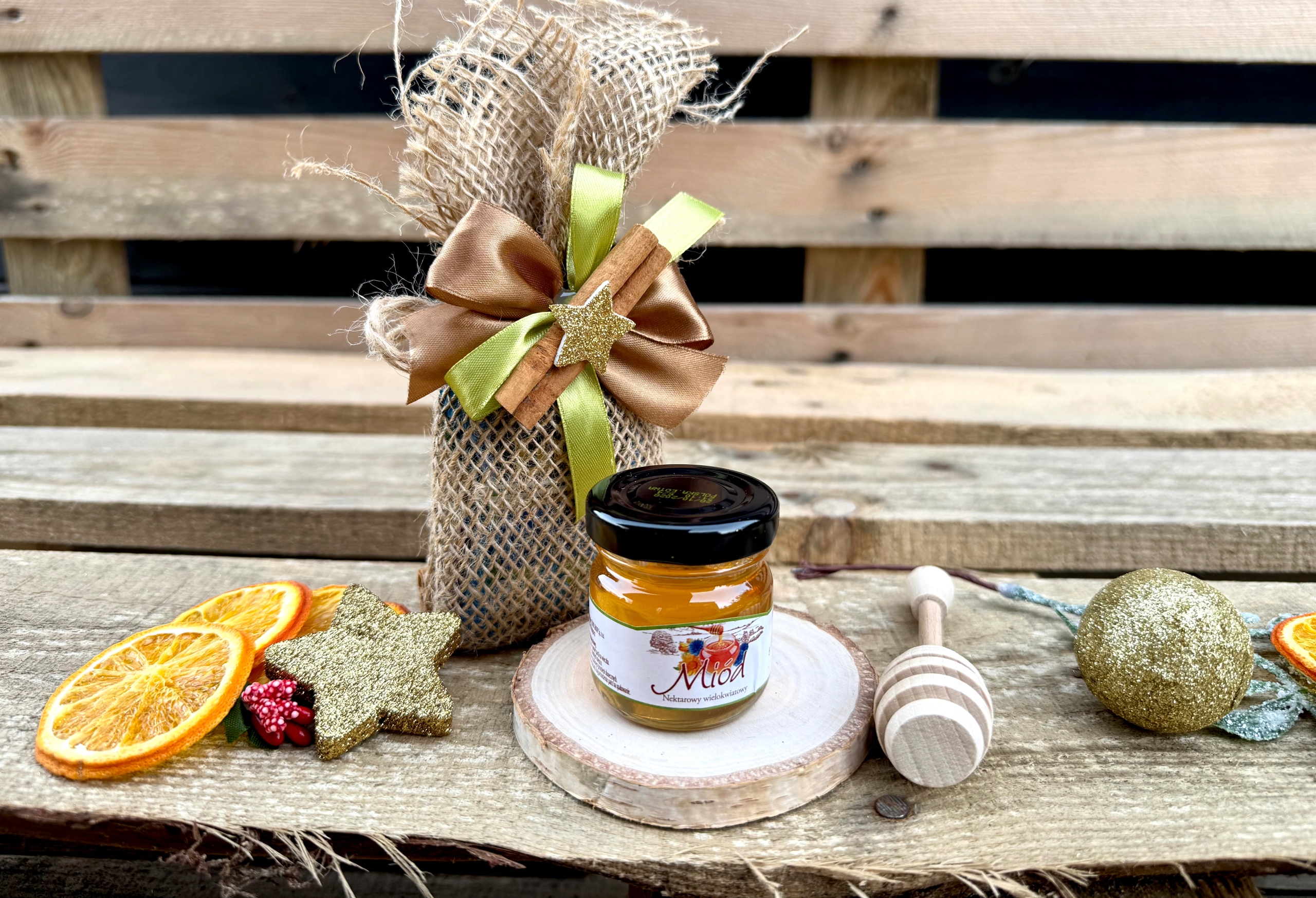 Вкусный натуральный мед, запечатанный в уникальную небольшую баночку.