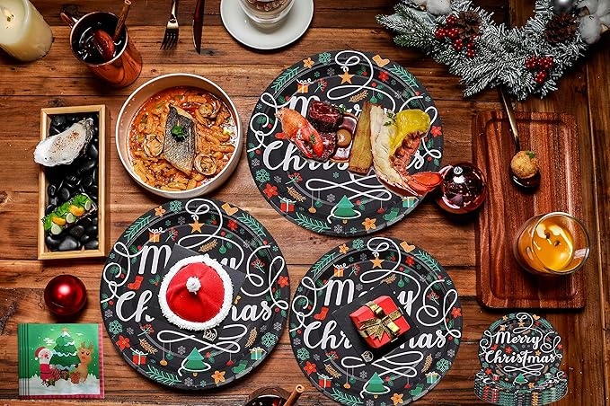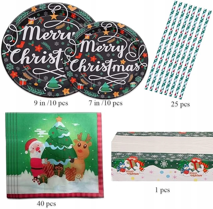 РІЗДВЯНИЙ ПОСУД ТАРІЛКИ СТОЛОВІ ПРИБОРИ ЧАШКИ СЕРВЕТКИ 10 персон