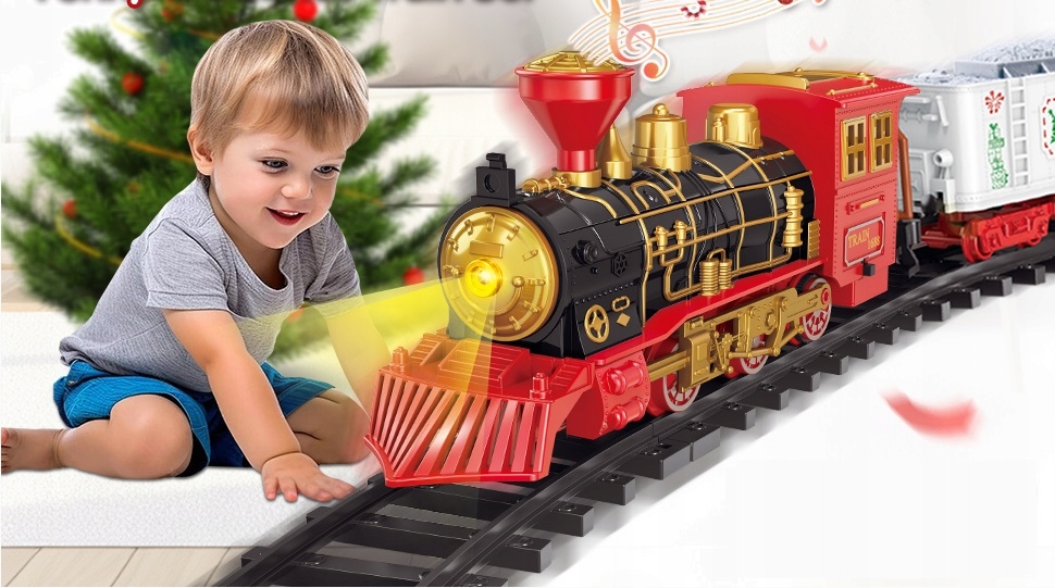 В отличие от обычных елочных наборов, паровозик может кататься вокруг елки, создавая волшебную атмосферу, которая понравится всей семье. Классические красные вагончики, подсвеченные рождественскими гирляндами, в сопровождении мелодии и свистка добавят интерьеру рождественской атмосферы.