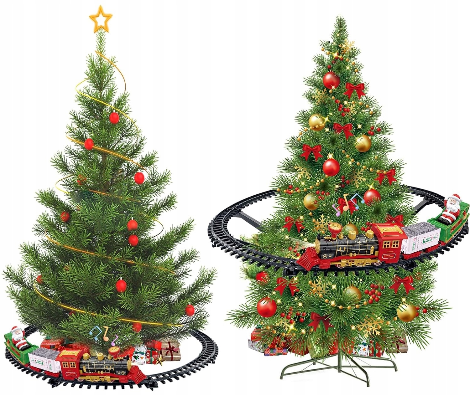 Установив рельсы посередине рождественской елки, поезд будет величественно обходить елку, придавая ей уникальный вид.