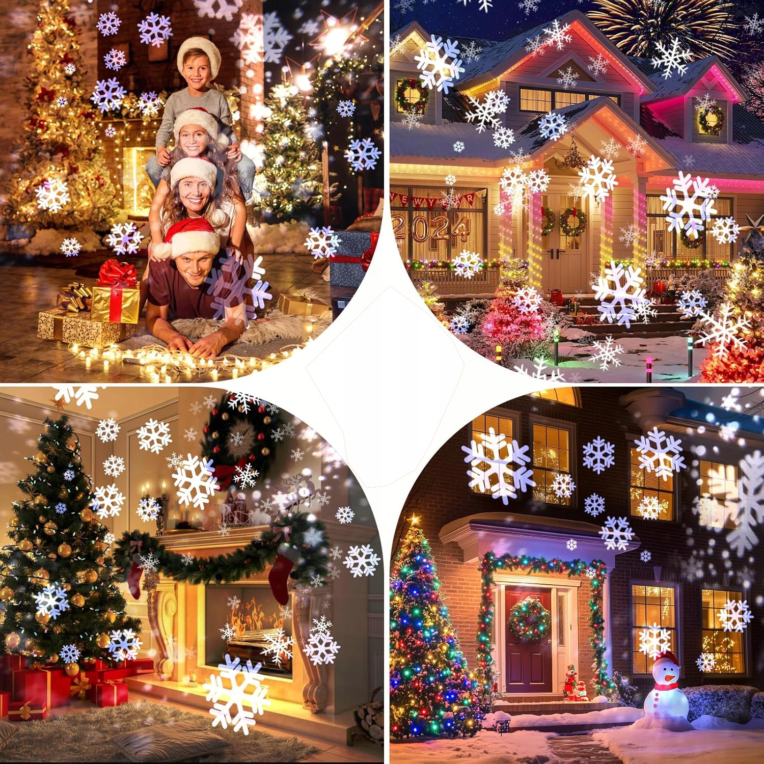 🎄🎄🎄 Великолепный эффект снежинки: Этот рождественский прожектор-снежинка, изготовленный из светодиодов высокой яркости, отбрасывает красивые снежинки, создавая реалистичную сцену падающего снега. Придаст нотку зимнего очарования любому дому. Идеально подходит для ночного освещения внутри и снаружи, идеально подходит для Рождества, торжеств, вечеринок, свадеб, украшения дома, садов и ландшафтного освещения.