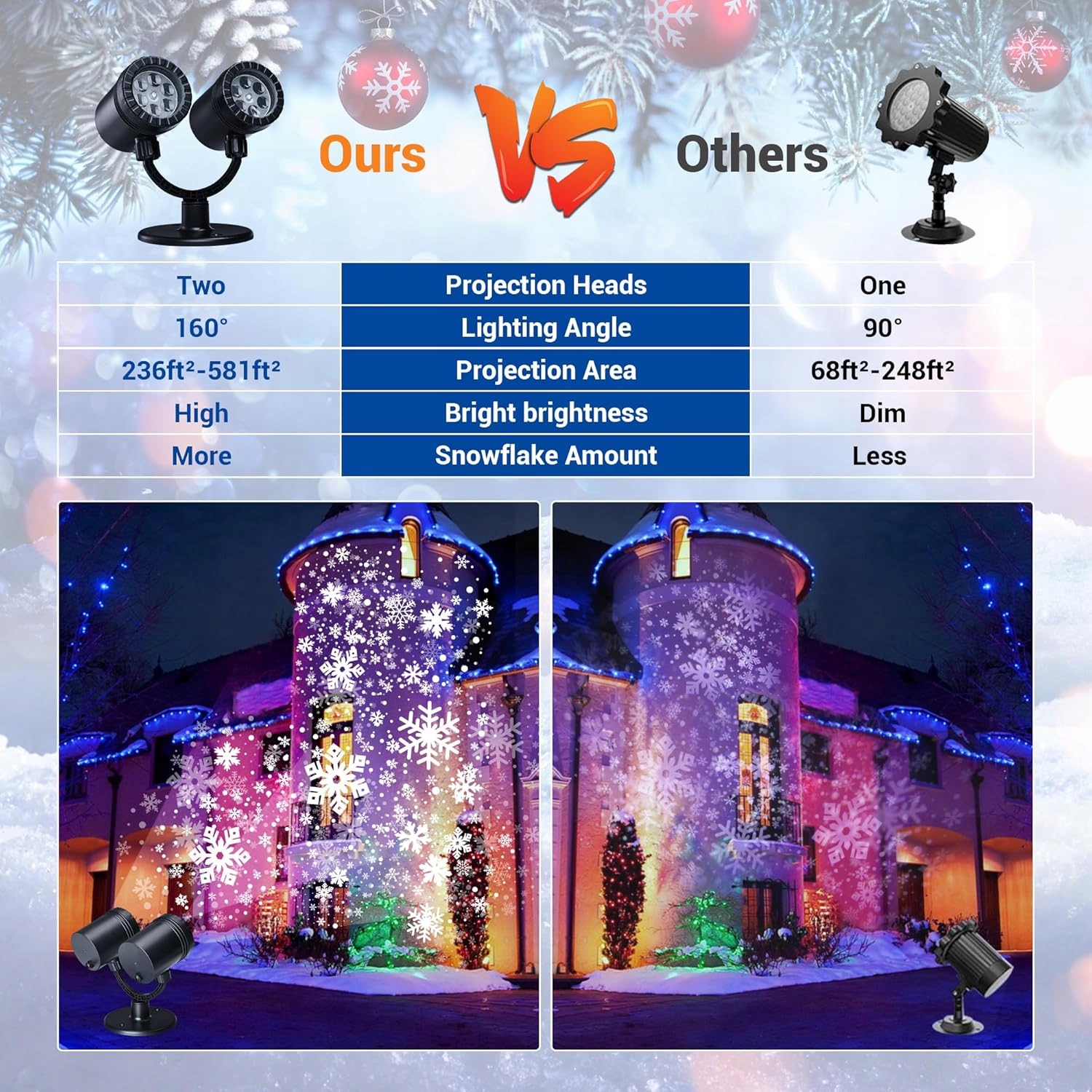 РОЖДЕСТВЕНСКИЙ ПРОЕКТОР С ДВОЙНОЙ ГОЛОВКОЙ СНЕЖИНКИ ВОДОНЕПРОНИЦАЕМЫЙ НАРУЖНЫЙ