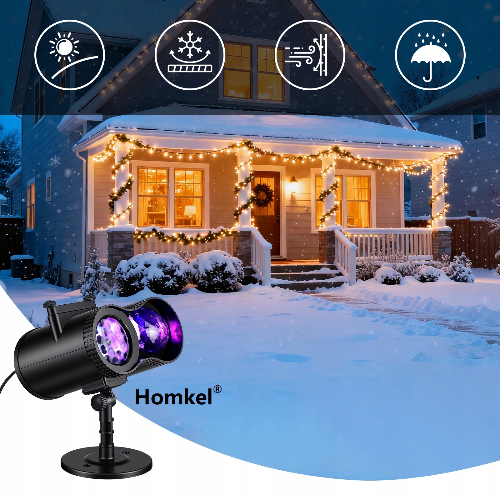 Вас беспокоит погода? Не будь! Благодаря степени защиты IP65 проектор Homkel устойчив к дождю, снегу, пыли и колебаниям температуры. Оставьте его на улице на весь сезон – это совершенно безопасно!