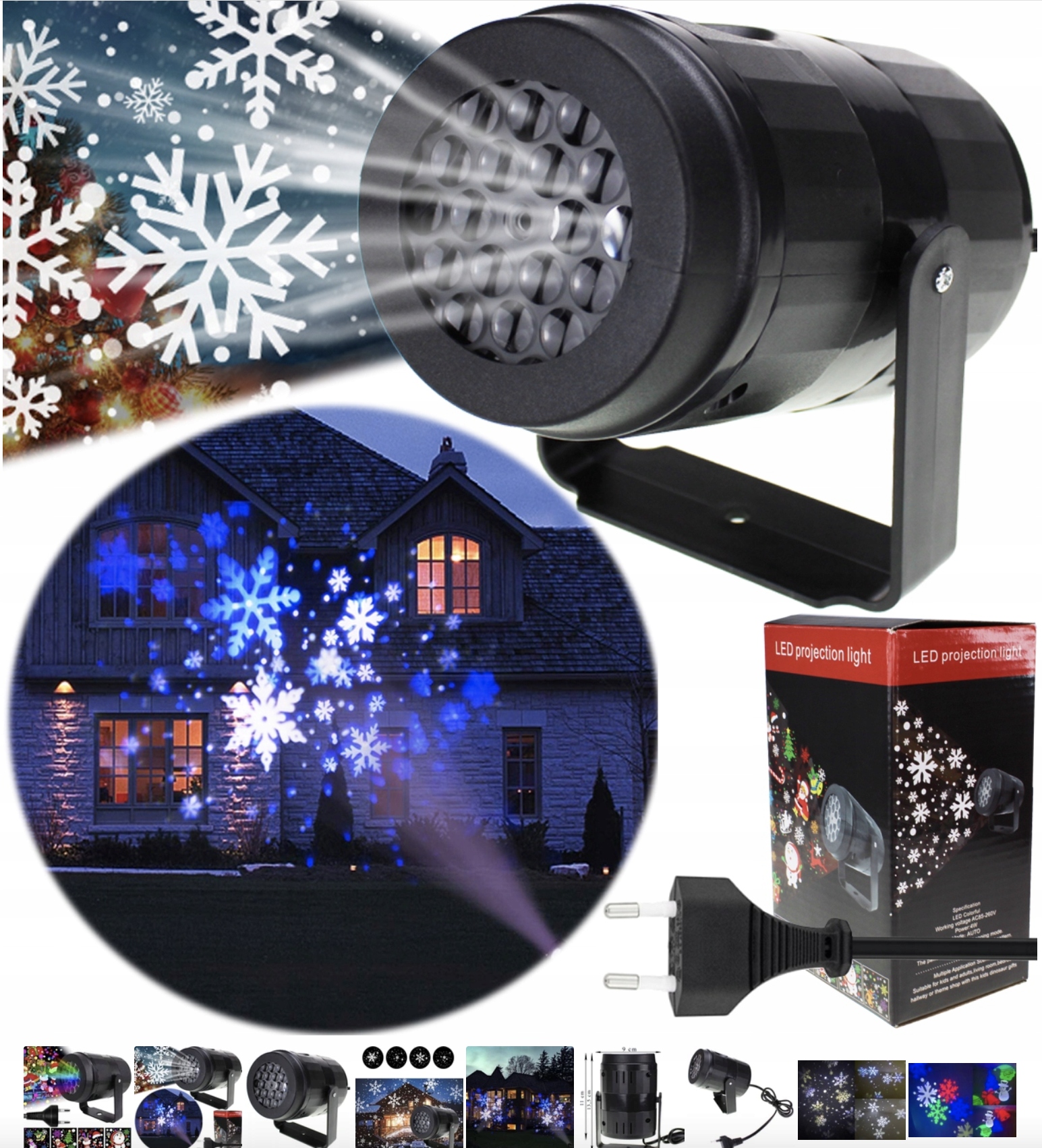 ✅ СОЗДАВАЙТЕ ОСОБЫЕ МОМЕНТЫ - Светодиодный проектор - идеальное устройство, которое осветит ваш дом/квартиру и придаст ему уникальный вид. Он будет отображать белые движущиеся снежинки как на здании, так и на доме, например, на улице. в комнате. Движение хлопьев спокойное. Это, безусловно, самый простой и быстрый способ украсить Рождество.
