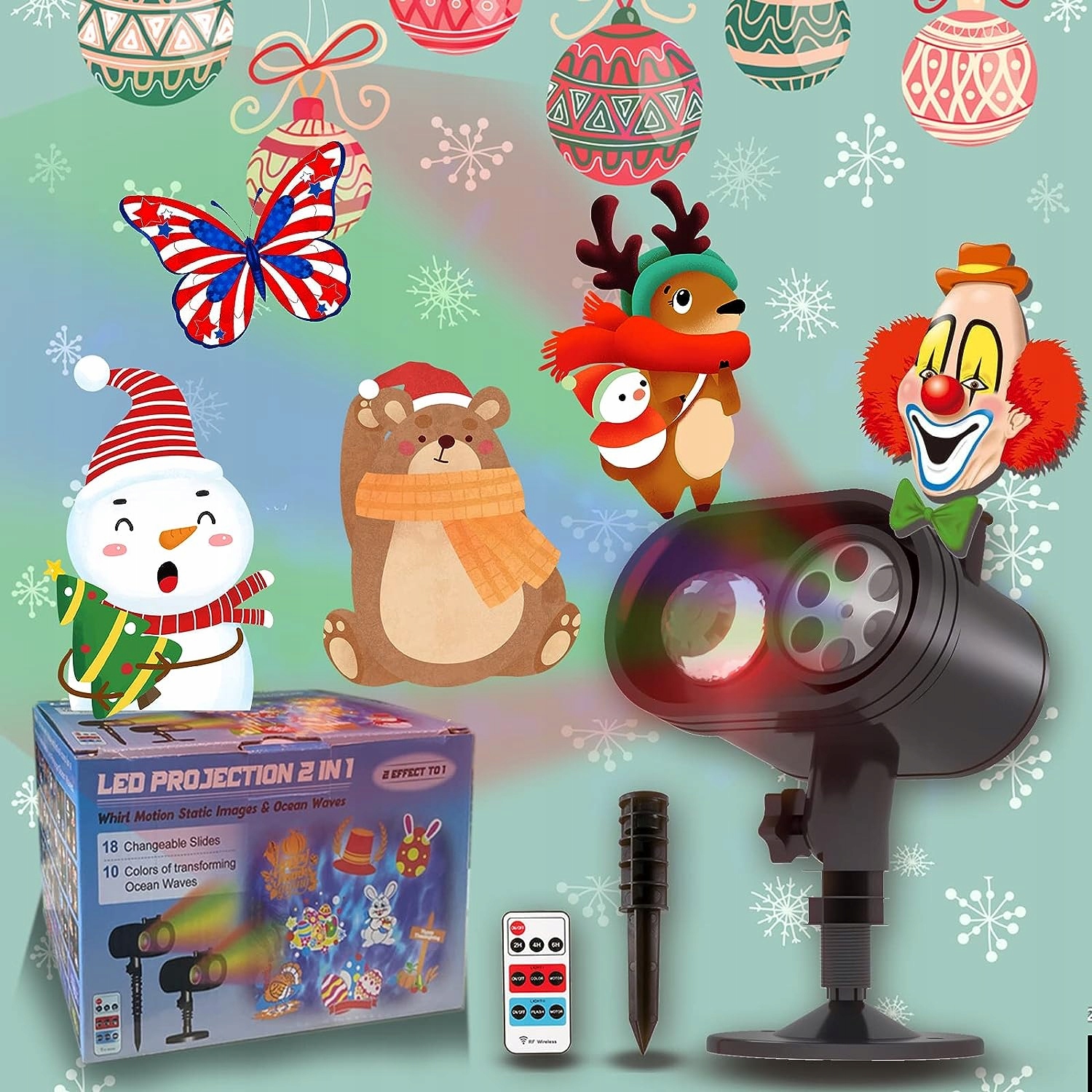 COCOSUGAR РОЖДЕСТВЕНСКИЙ СВЕТОДИОДНЫЙ ПРОЕКТОР С 18 СЛАЙДАМИ И 10 ЦВЕТАМИ