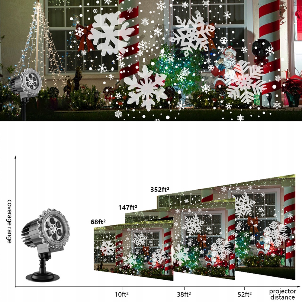 Проектор мощностью 9 Вт в два раза ярче стандартных моделей мощностью 5 Вт! 💡 Освещает площадь 30-70 м², отбрасывая очаровательные, реалистичные узоры из снежинок и звезд на стены, деревья и фасады.