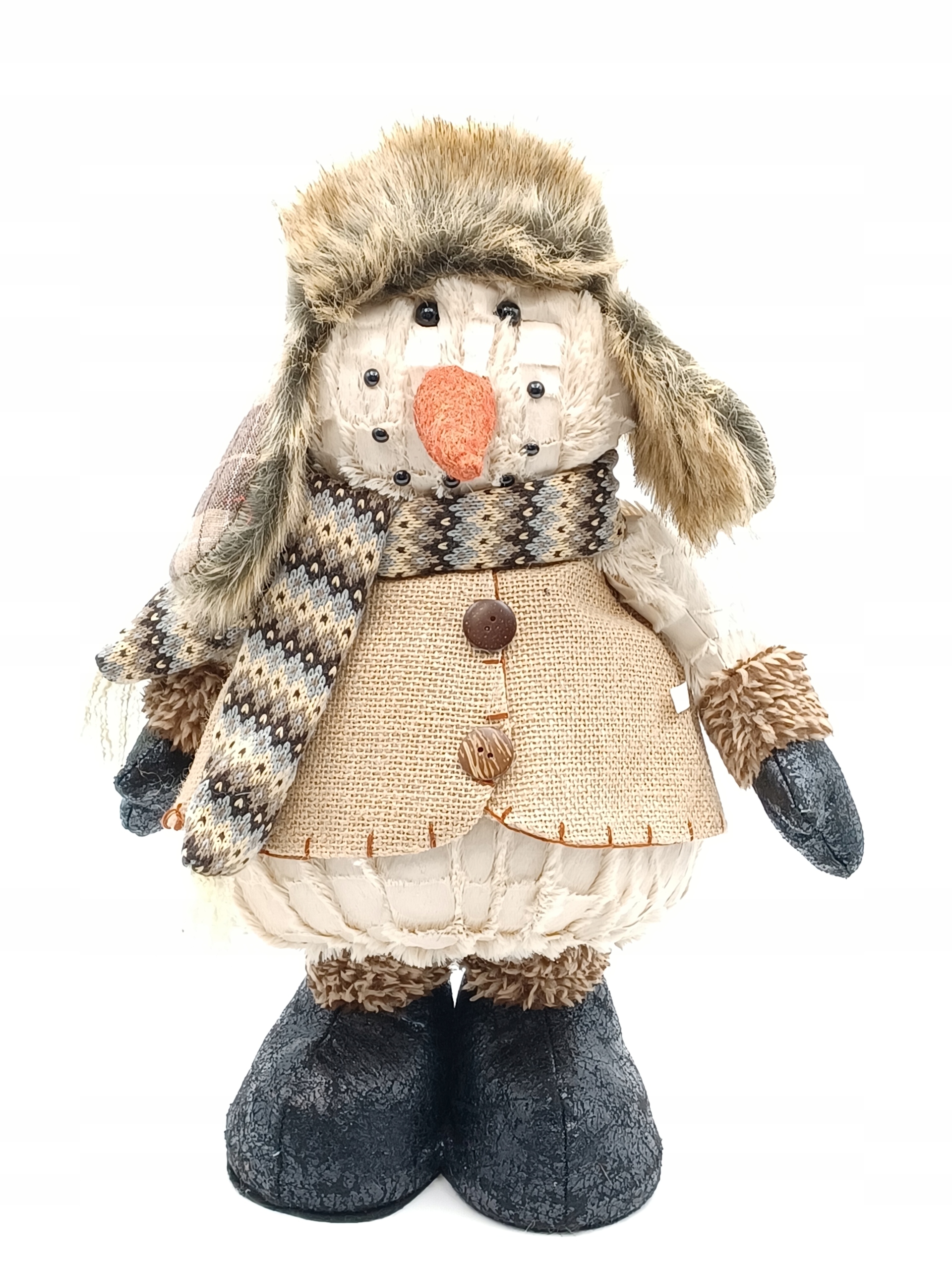 Снеговик изготовлен из качественных материалов с вниманием ко всем деталям. Теплые цвета.
