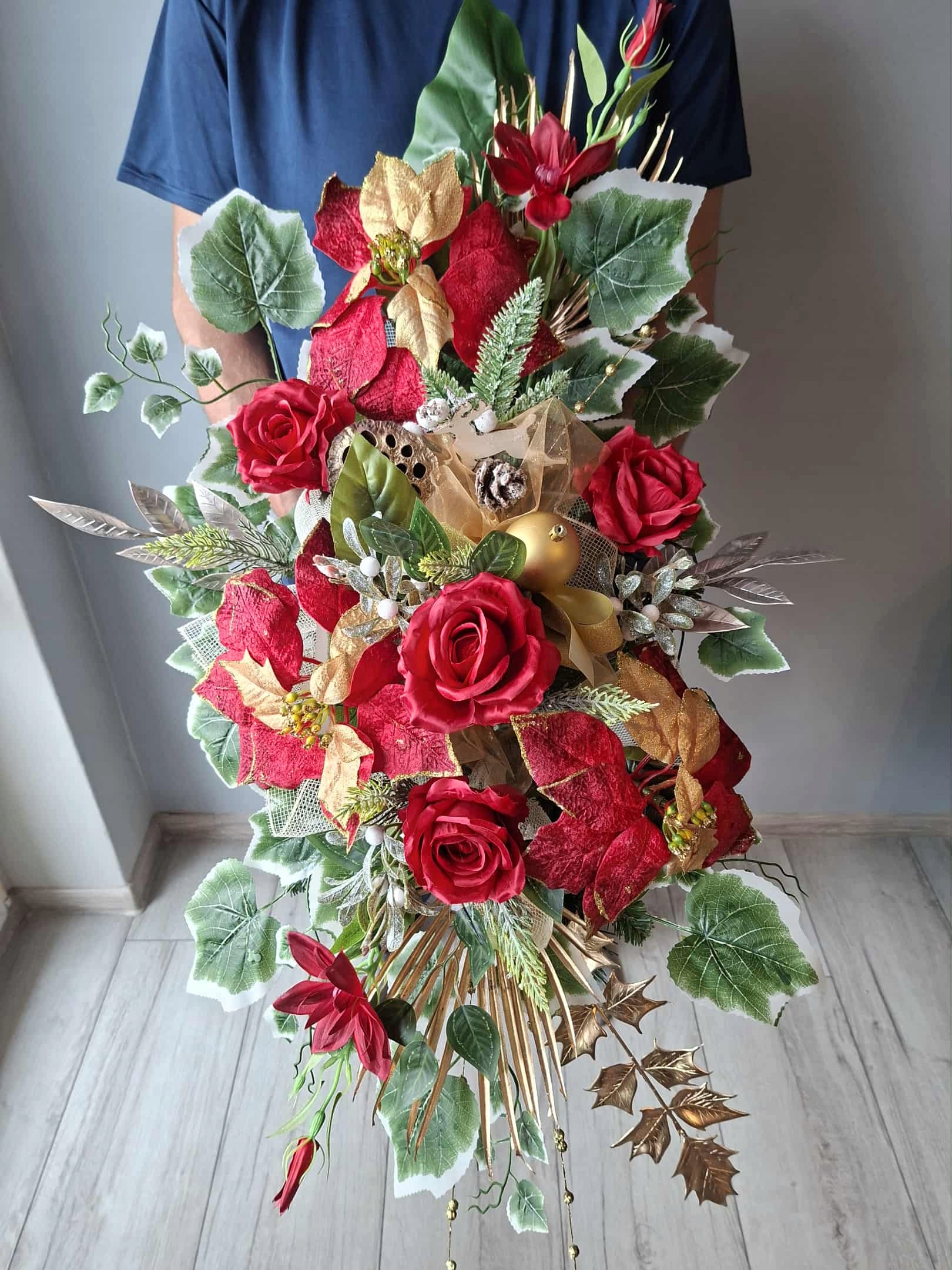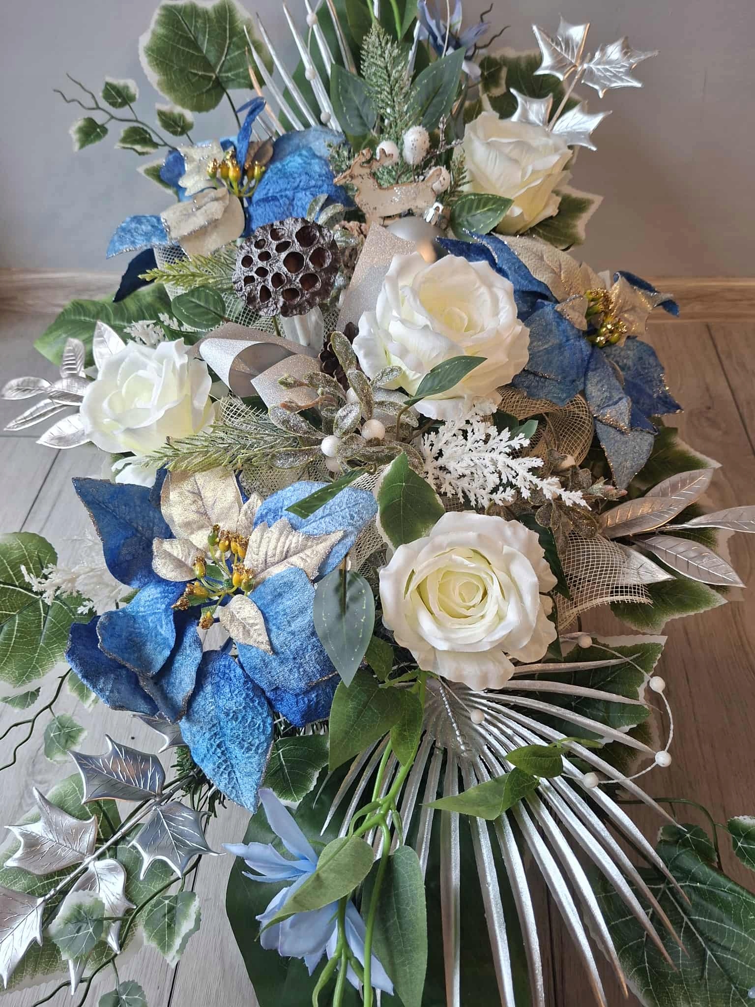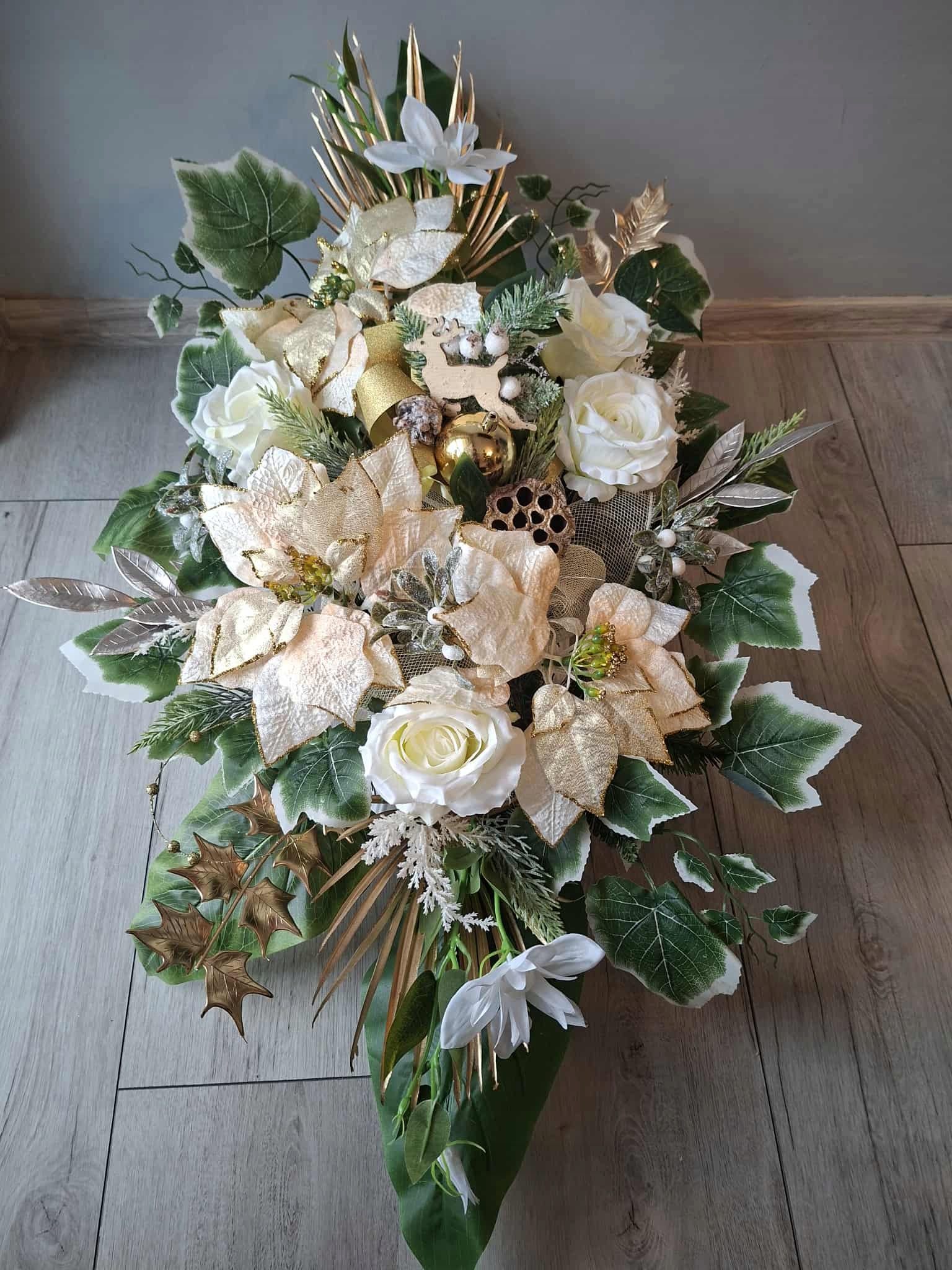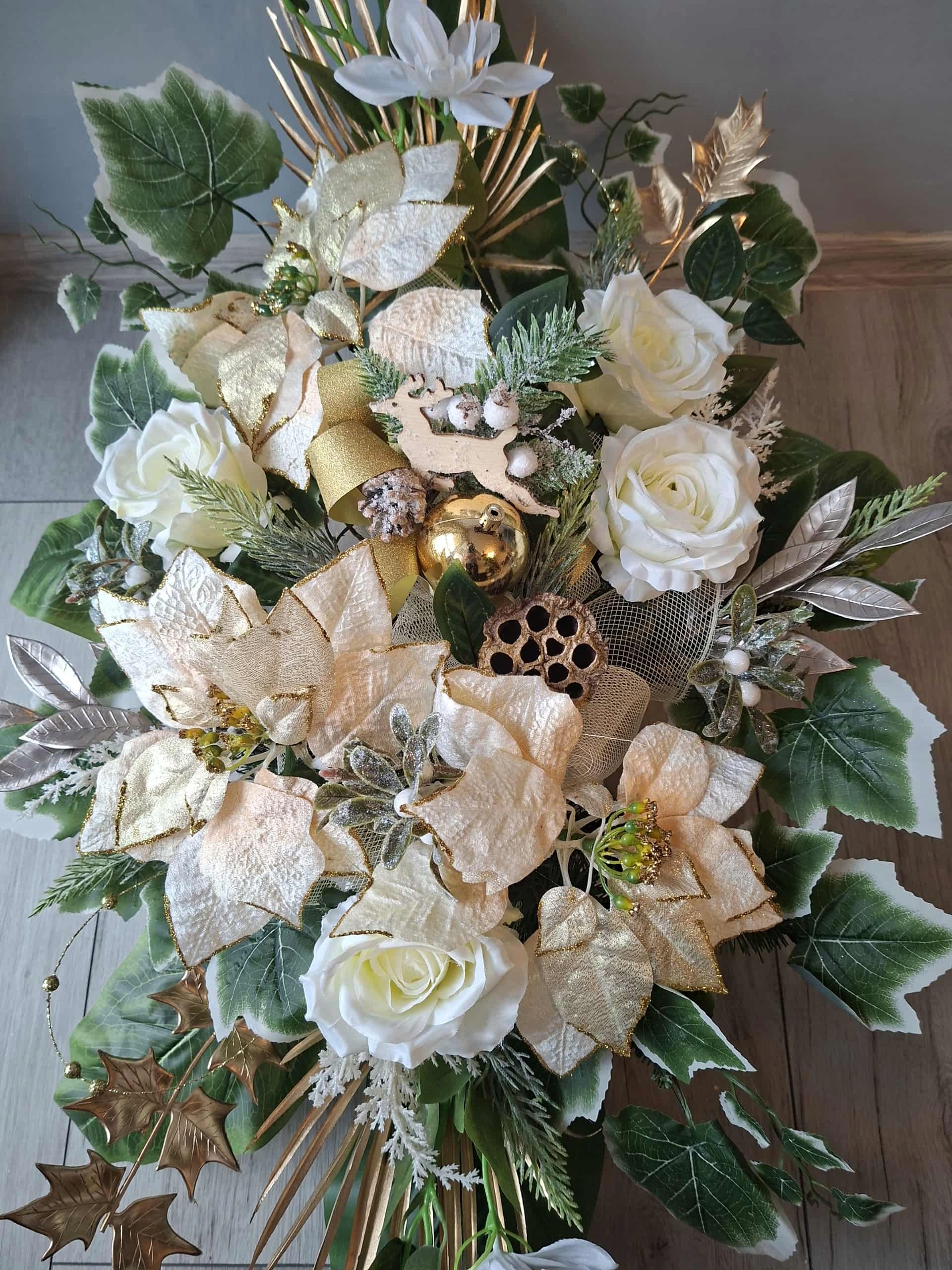 РОЖДЕСТВЕНСКОЕ украшение на МОГИЛУ композицию, СВЯЗКУ, памятник, ИСКУССТВЕННЫЙ ЦВЕТОК