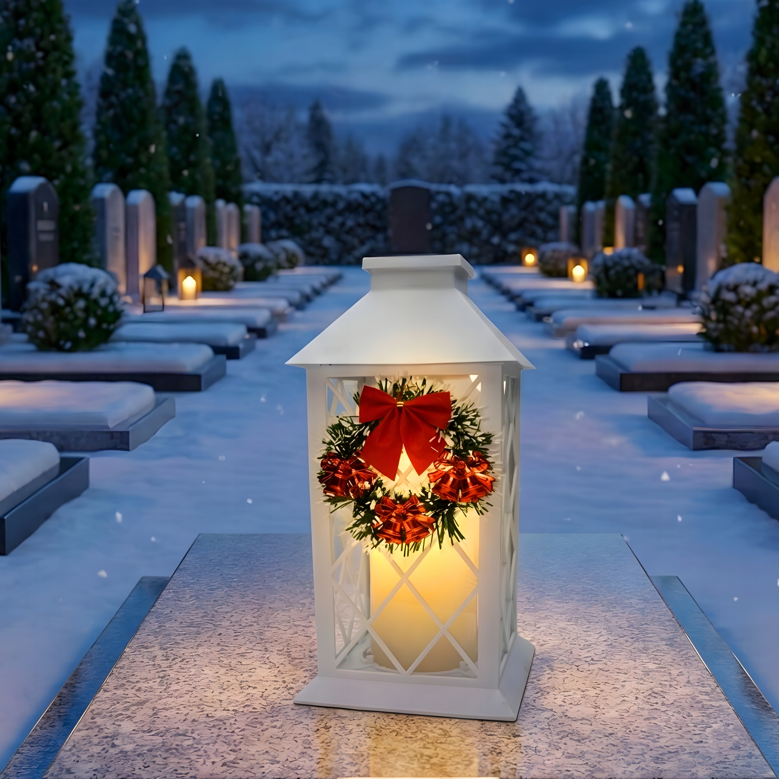 Изящный белый солнечный фонарь — красивое новогоднее украшение, которое будет хорошо смотреться как дома, в саду, так и на могиле близкого человека. Классическая форма, рождественский венок с красным бантом и теплый свет светодиодной свечи создают романтическую зимнюю атмосферу. Благодаря нейтральным цветам и нежному освещению фонарь гармонично впишется в любую композицию - от рождественских украшений в помещении до спокойных зимних композиций на открытом воздухе.