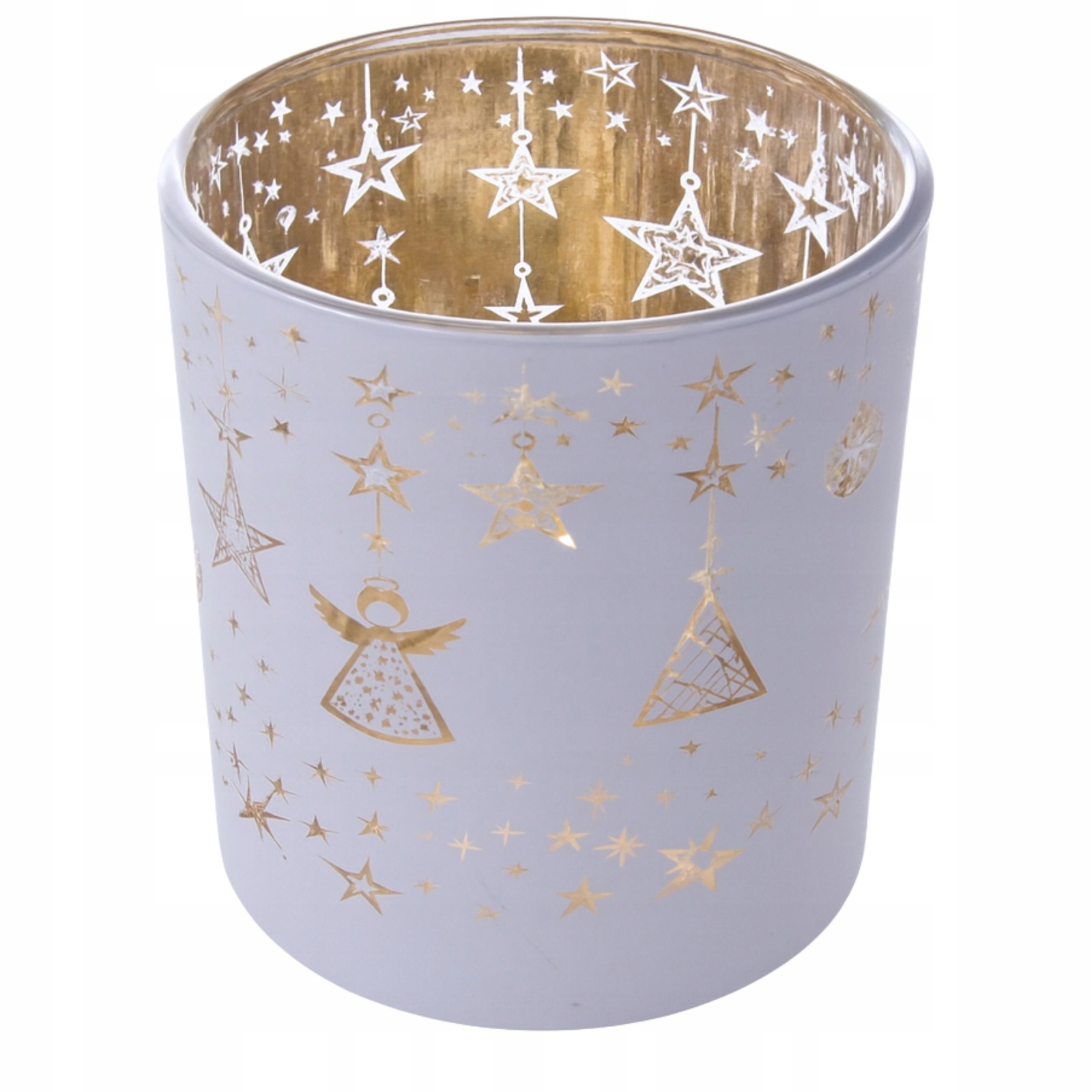 <ул> <ли> Материал: стекло. <ли> Цвет: матовый белый с внутренней золотой отделкой. <ли> Тема: ангелы, звезды, рождественские елки. <ли> Применение: чайные свечи, украшение стола, украшение подоконника, рождественский подарок. <ли> Размеры: <ли> ✅ Диаметр: 8 см. <ли> ✅ Рост: 7,5 см.Резюме: