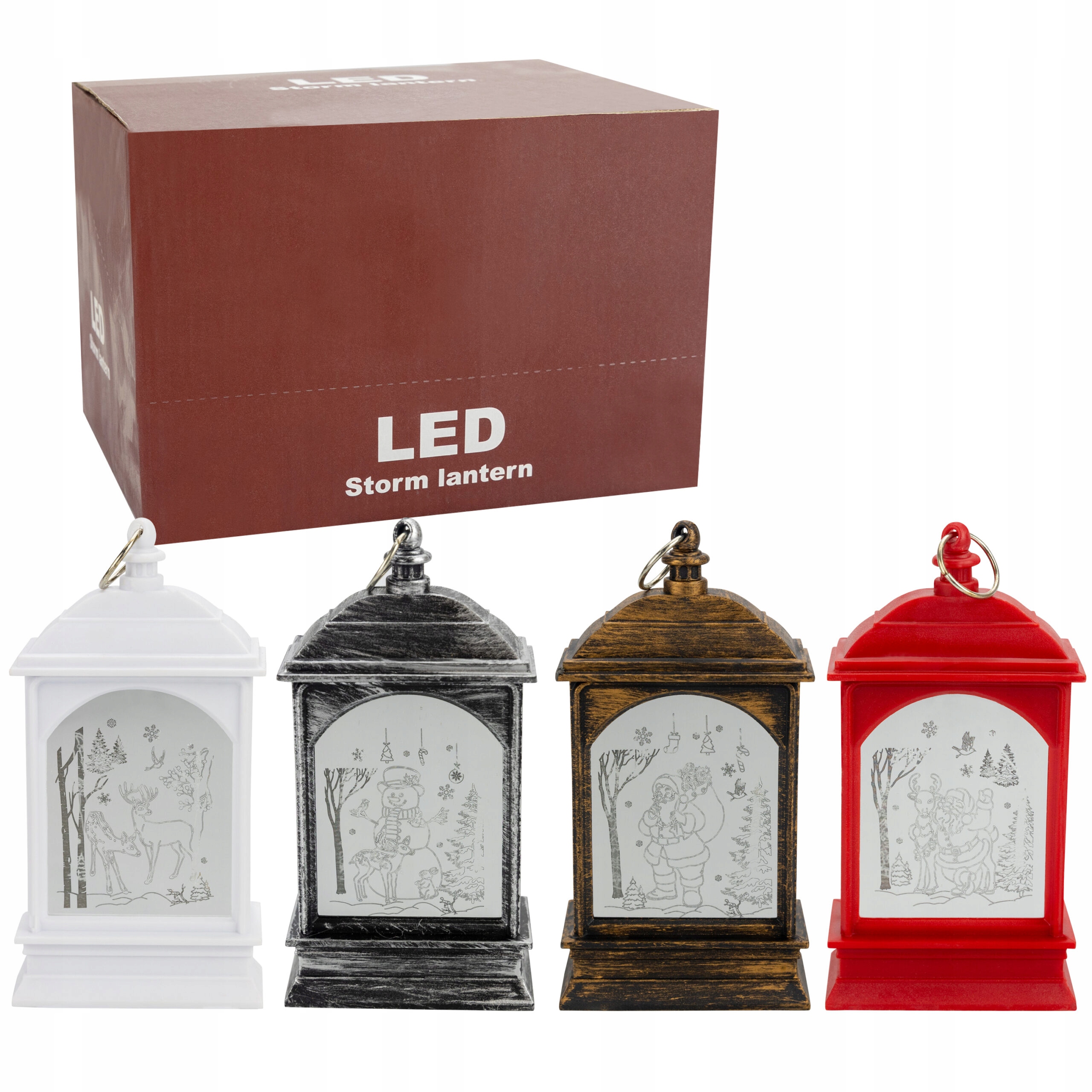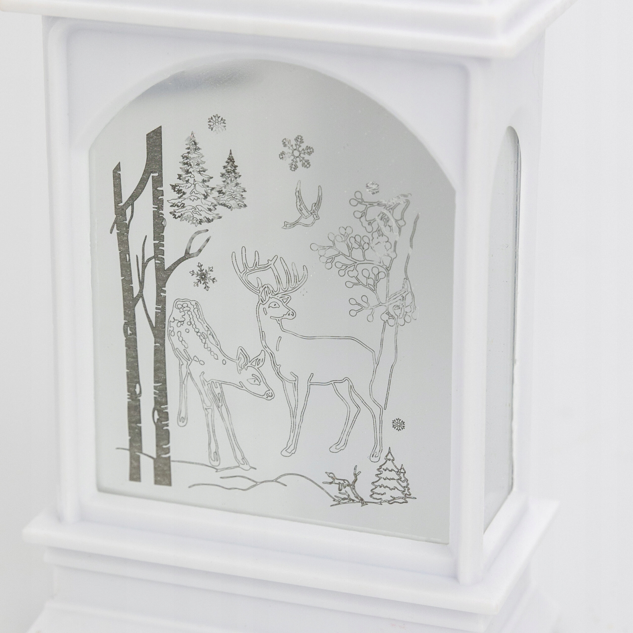 Рождественский фонарь с питанием от трех батареек LR44 (в комплекте). Прекрасно подойдет как отдельное украшение, так и как элемент новогоднего декора. Фонарь светит нейтральным светом благодаря мощному светодиоду. На обеих сторонах выгравированы зимние и рождественские иллюстрации. Его можно разместить на шкафу, камине, столе или повесить благодаря специальной петельке, установленной сверху.