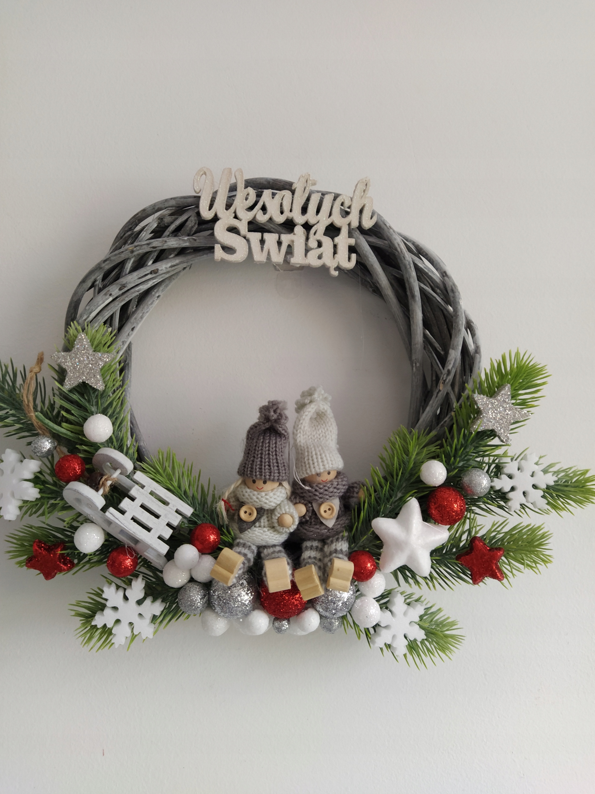 Венки изготавливаются вручную, расположение украшений может незначительно отличаться :) Цвет венка серо - коричневый.