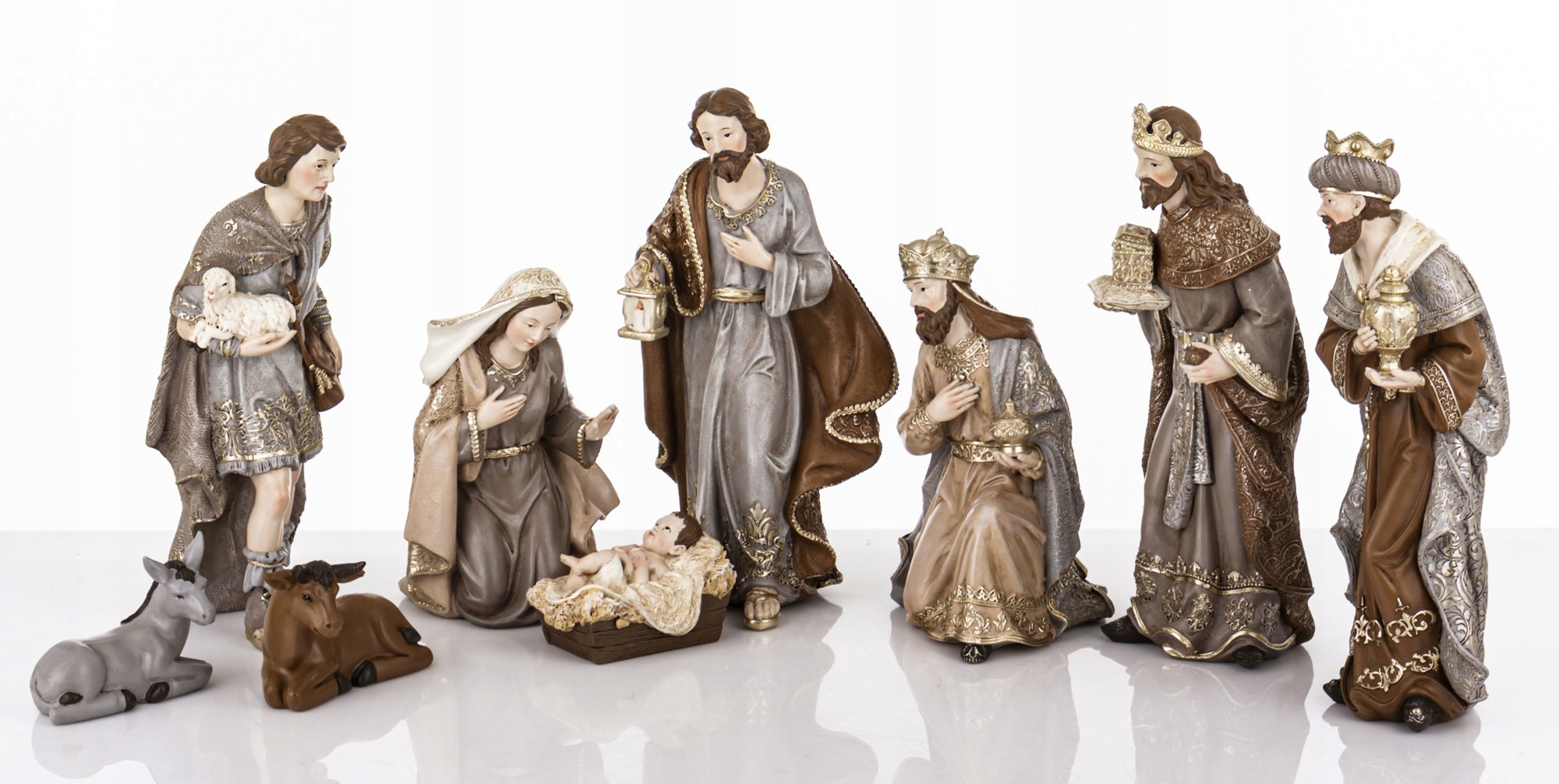 Этот элегантный вертеп изображает одну из самых красивых сцен в истории — рождение Иисуса в Вифлееме. Выполненный с вниманием к каждой детали, он завораживает своим спокойствием, нежностью и благородными рождественскими красками.
