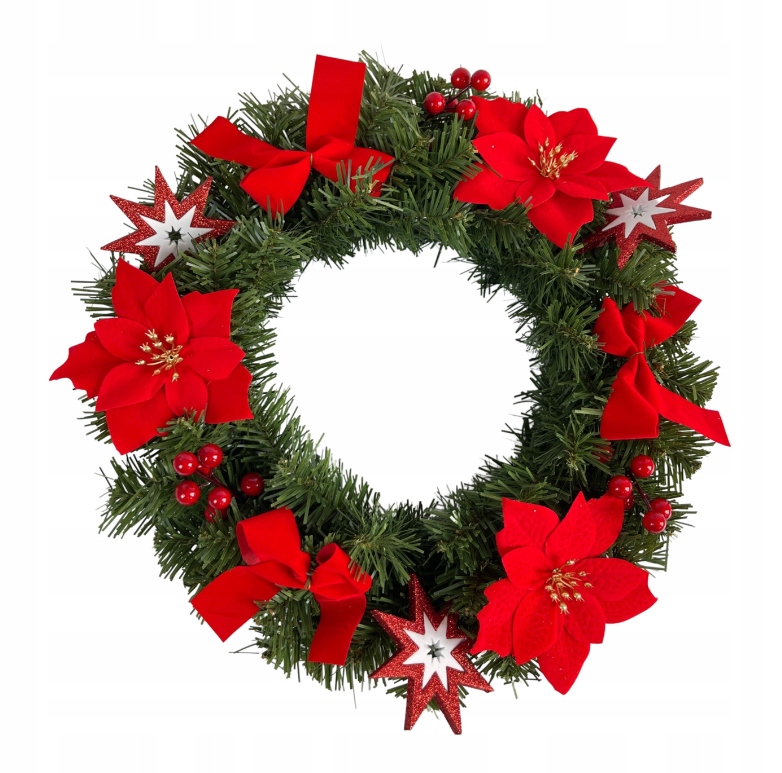 РІЗДВЯНИЙ ВІНОК 40 СМ ЧЕРВОНИЙ В РОЗЗІРІ
