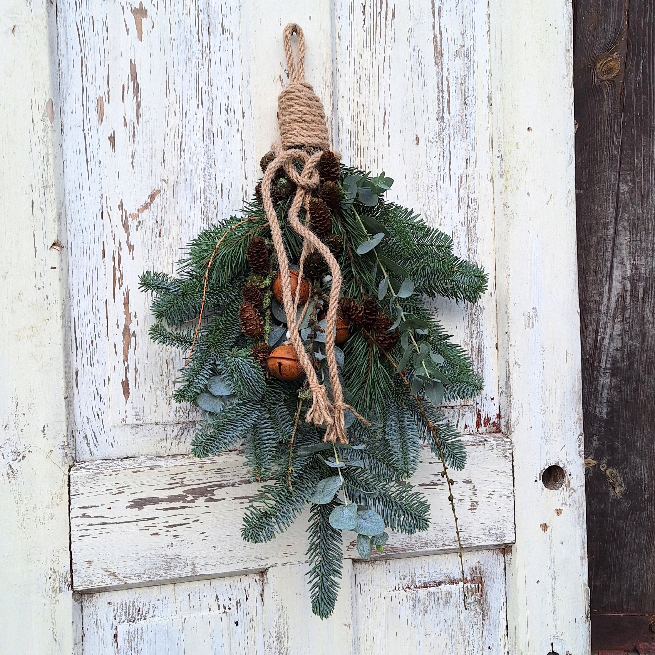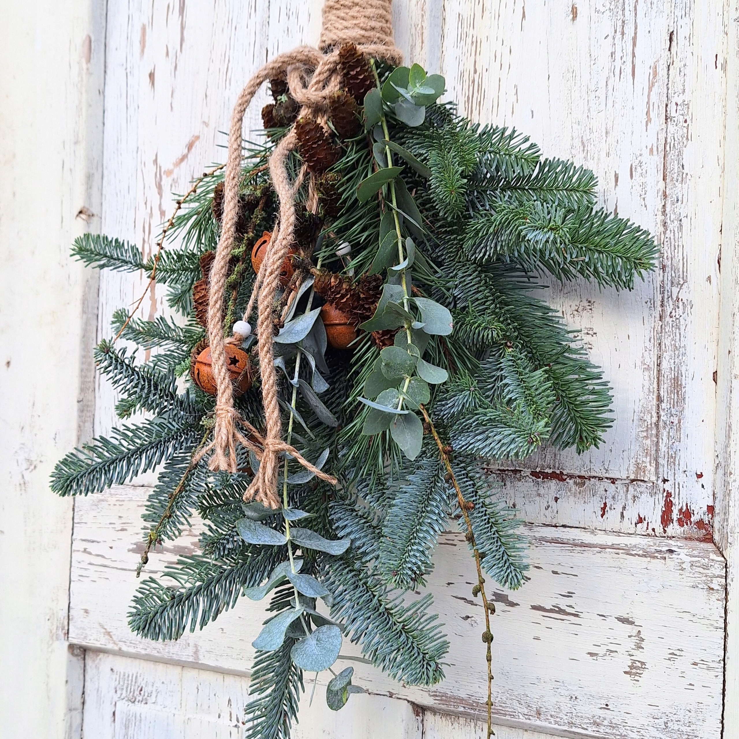 Рождественский венок с колокольчиками - натуральное зимнее украшение из пихты нобилис
