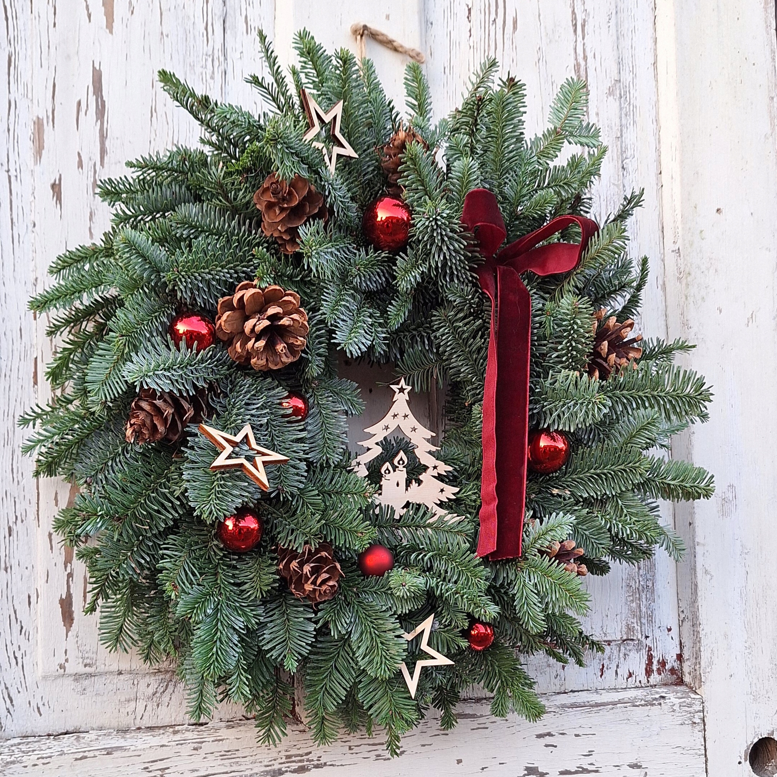Рождественский венок на двери, яркий. Естественный. Нобилис, Рождество 38 см