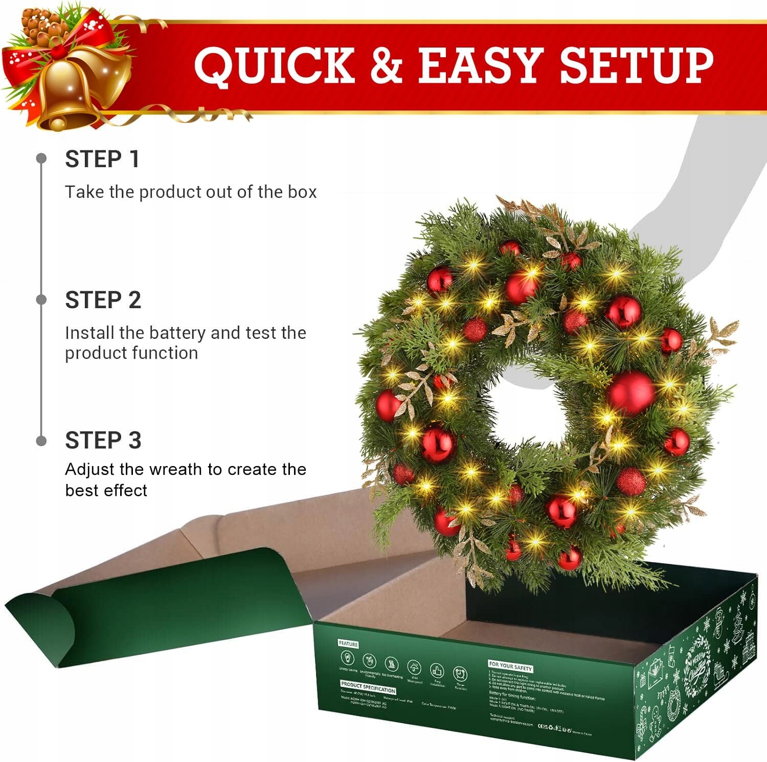 Безопасность и долговечность: рождественский венок GlobaLink изготовлен из прочного полиэтиленового пластика многоразового использования, который можно использовать в течение всего сезона. Никогда не выцветает, не высыхает, никогда не остается свежим, прочный и нетоксичный, дверные венки сертифицированы, поэтому не нагреваются во время использования и безопасны на ощупь.