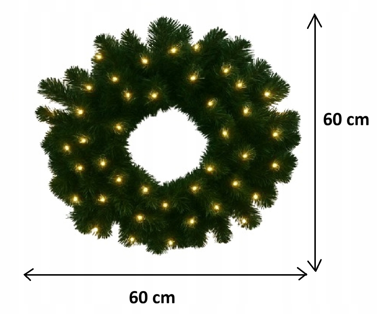 Ищете украшение, которое сразу создаст рождественскую атмосферу и порадует всех? Наш изящный рождественский венок впечатляющим диаметром 60 см – идеальный выбор! Состоит из 135 плотных, тщательно расположенных веточек.
