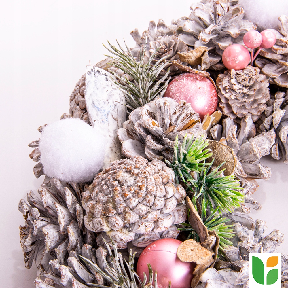 Элегантный снежный рождественский венок диаметром 34 см — идеальное дополнение к любому дому или офису, которое добавит немного рождественской атмосферы.