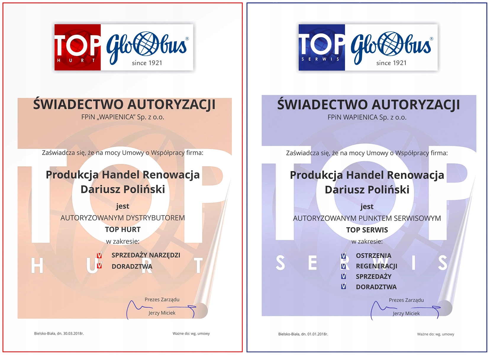 - Возможно профессиональное обслуживание и восстановление инструменты, которые мы продаем. Это подтверждено сертификатом TOP SERWIS.