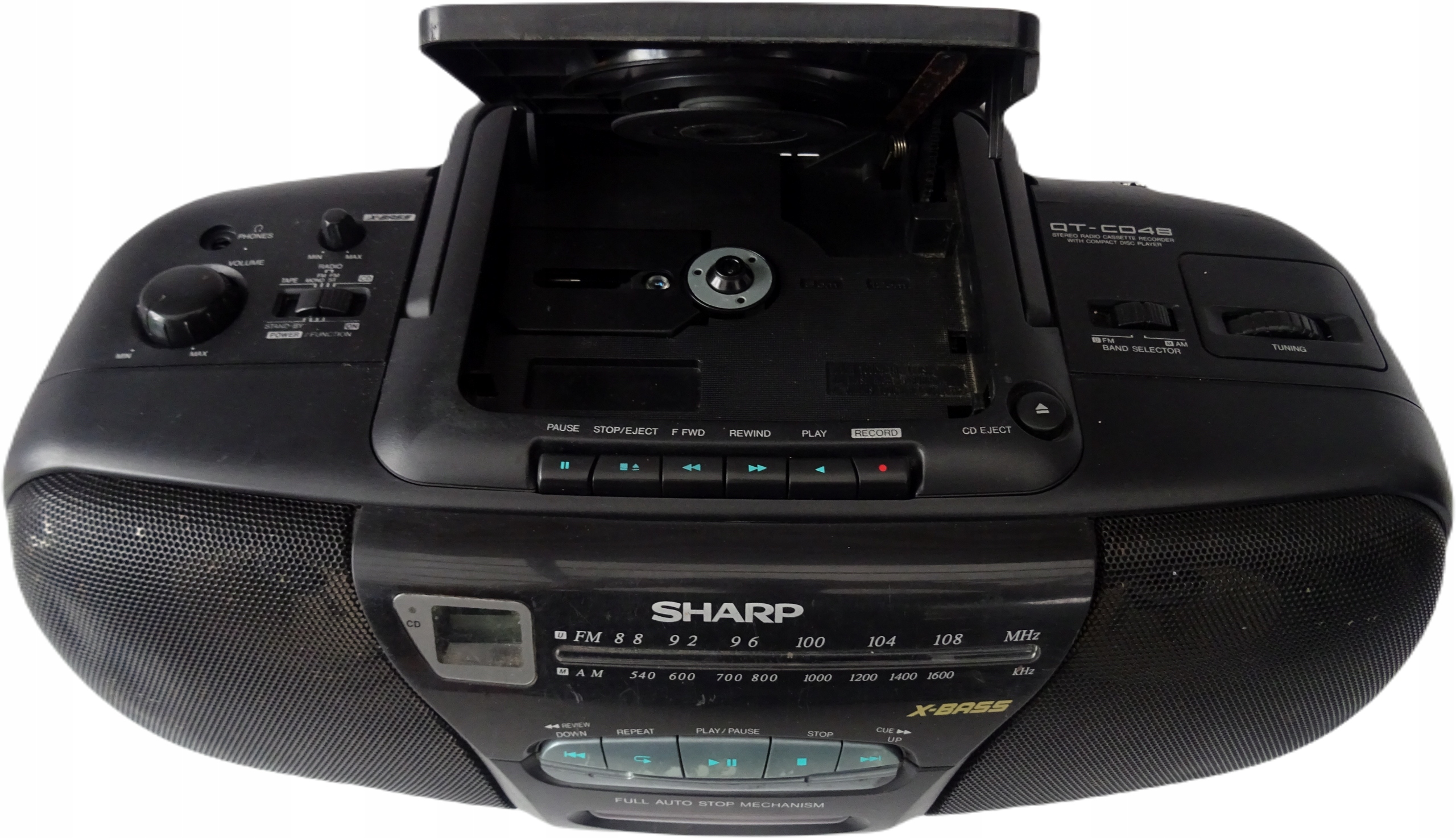 Магнитола Sharp qt-CD48 с бумбоксом, отсутствуют антенны, не читается, подставка для компакт-диска в порядке