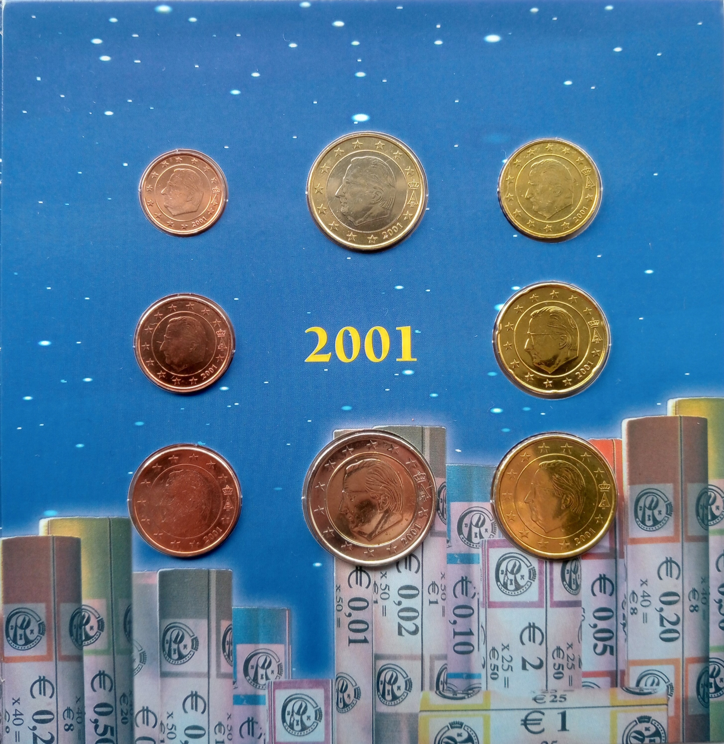 Різні монетні двори євро з 1999 по 2001 рік (UNC) Бельгія
