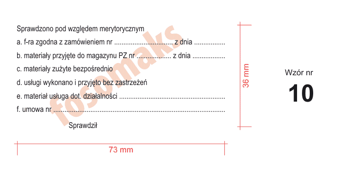 Просматривая «Различные шаблоны, указывающие на печать для бухгалтерского учета», вы можете быть уверены, что данный товар из каталога «Штампы» будет доставлен из Польши и проверен на целостность. В цене товара, указанной на сайте, учтена доставка из Польши. Внимание!!! Товары для Евросоюза, согласно законодательству стран Евросоюза, могут отличаться упаковкой или наполнением.