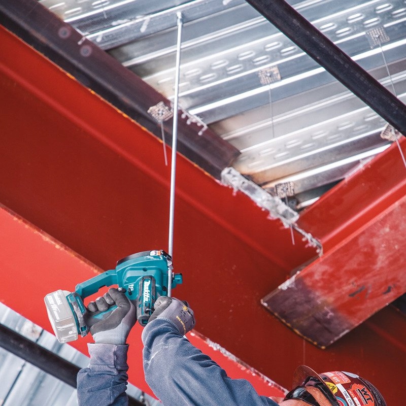 Быстрый и тихий резак для батареи для резьбовых стержней, питаемых безмолковым двигателем. Благодаря специальным челюстям, резка стержней происходит без изменений и вызывает легкое затягивание крышек.