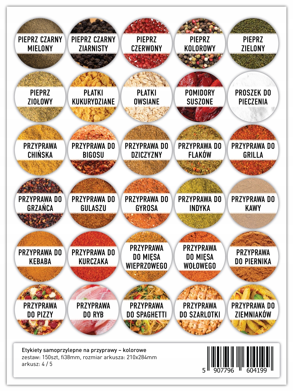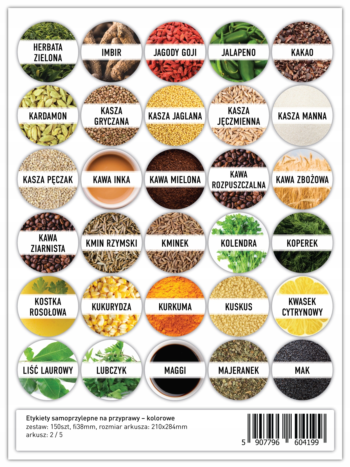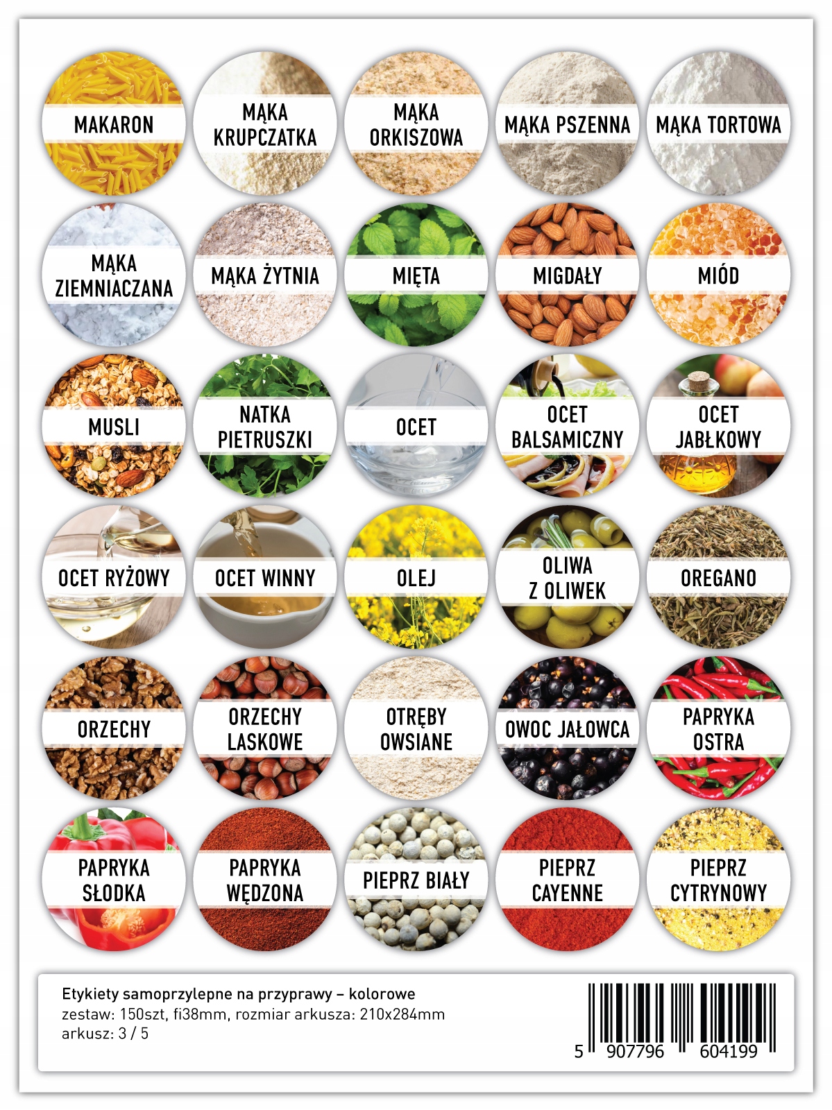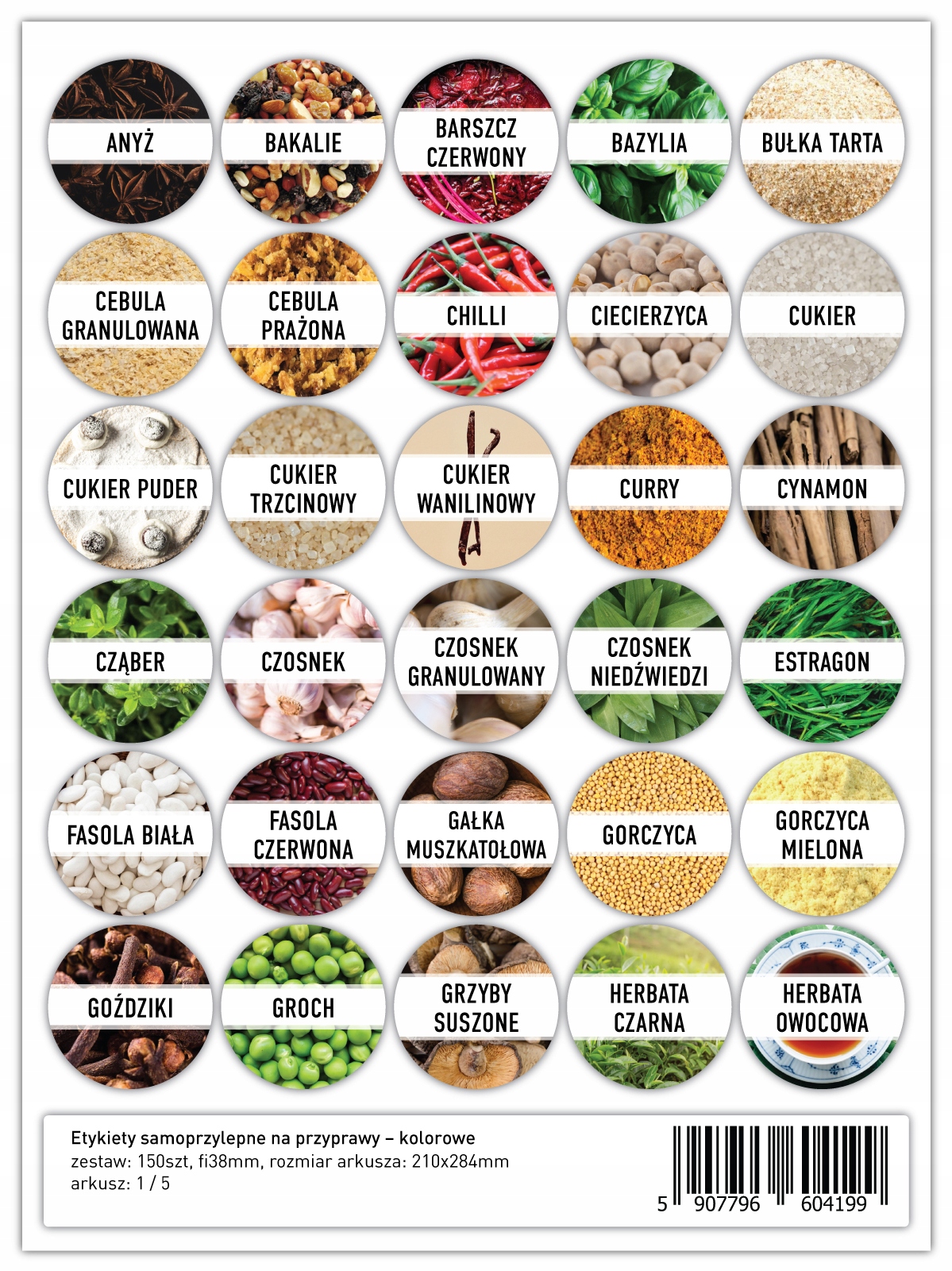 Самоклеящиеся этикетки/наклейки для специй, трав, продуктов - красочный набор