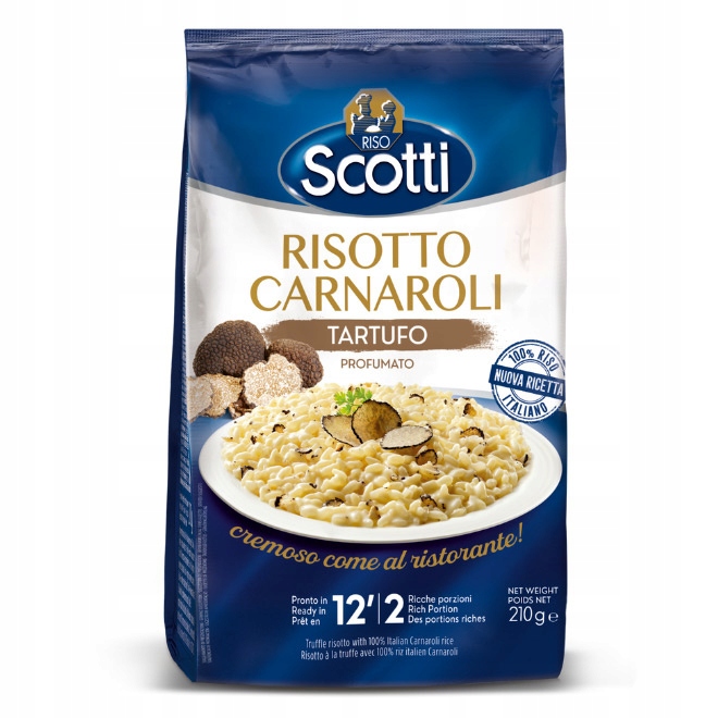 Riso Scotti Risotto al tartufo - это традиционный итальянский ризотто с рисом и трюфелями Карроли (часть для 2 человек). Традиционное блюдо из Италии готово через 12 минут. Высококачественные ингредиенты и оригинальный рецепт делают ризотто, вдохновляемые традицией итальянской кухни, впечатляет с подлинным вкусом.