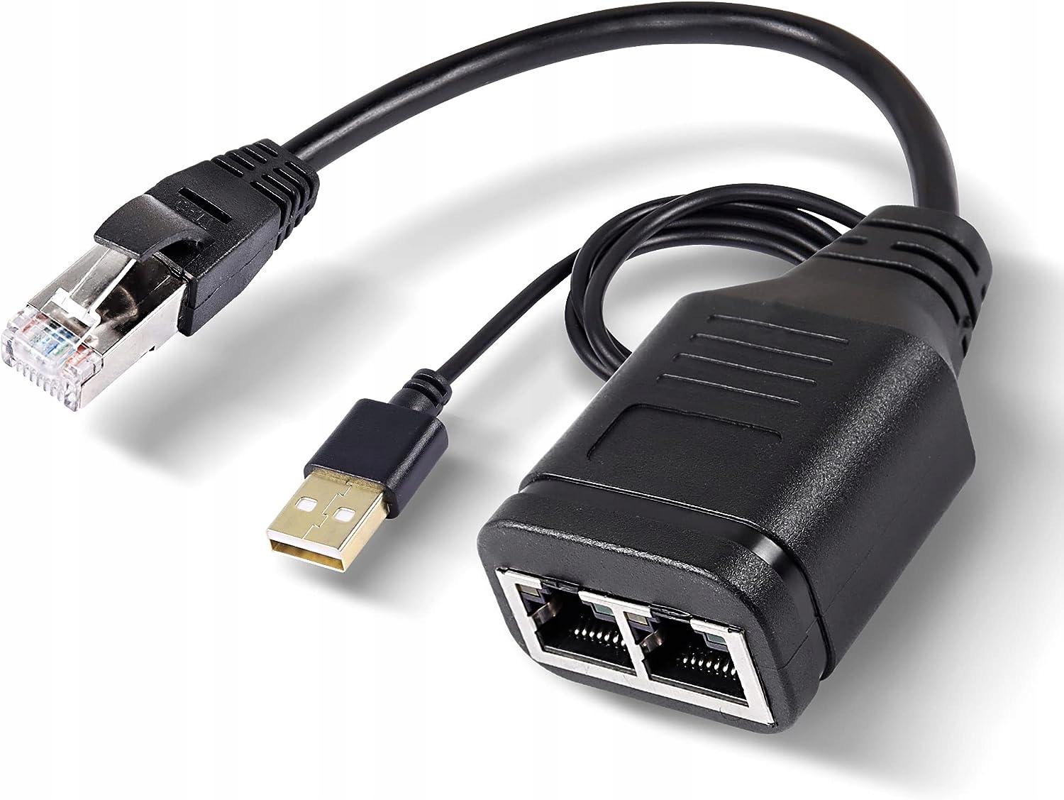RJ45 Ethernet Splitter Adapter 1 to 2 LAN Splitter + USB Adapter Power Adapter