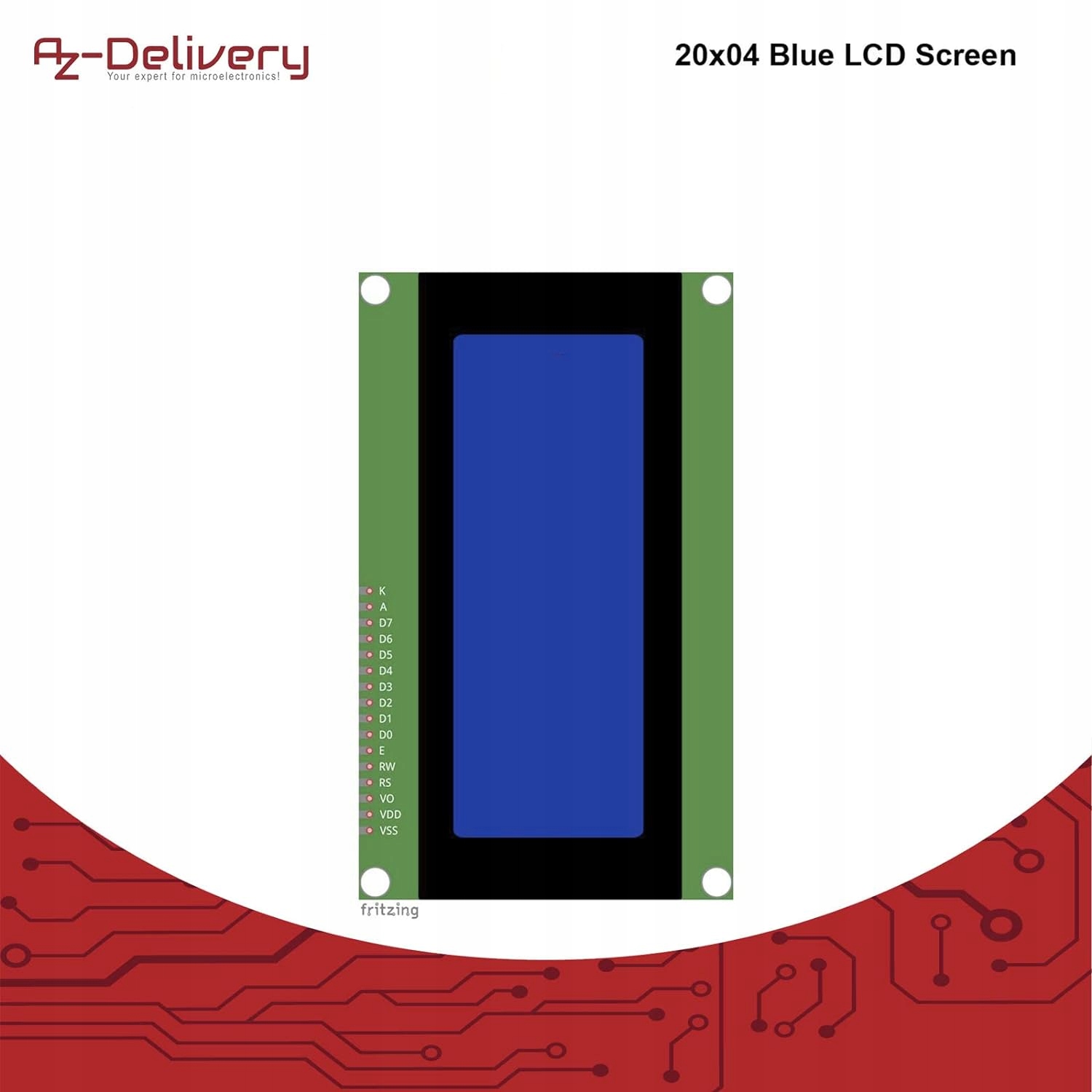 azdelivery hd44780 2004 ЖК -дисплей 4x20 символов с синим фоном и белыми знаками, совместимыми с Arduino и Raspberry Pi h1>