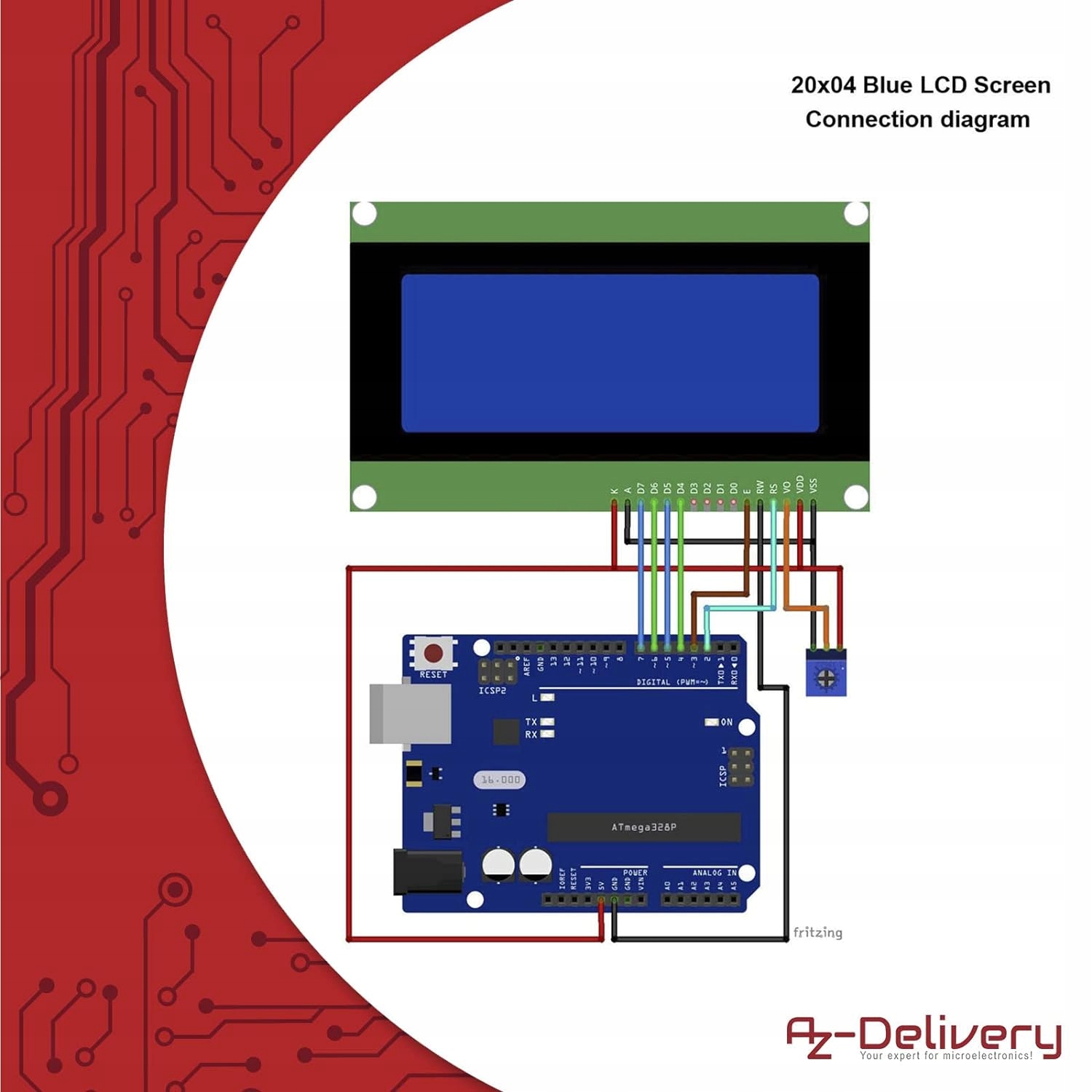 ✔ Azdelivery LCD HD44780 имеет 4 строки по 20 символов в каждой и синей подсветке