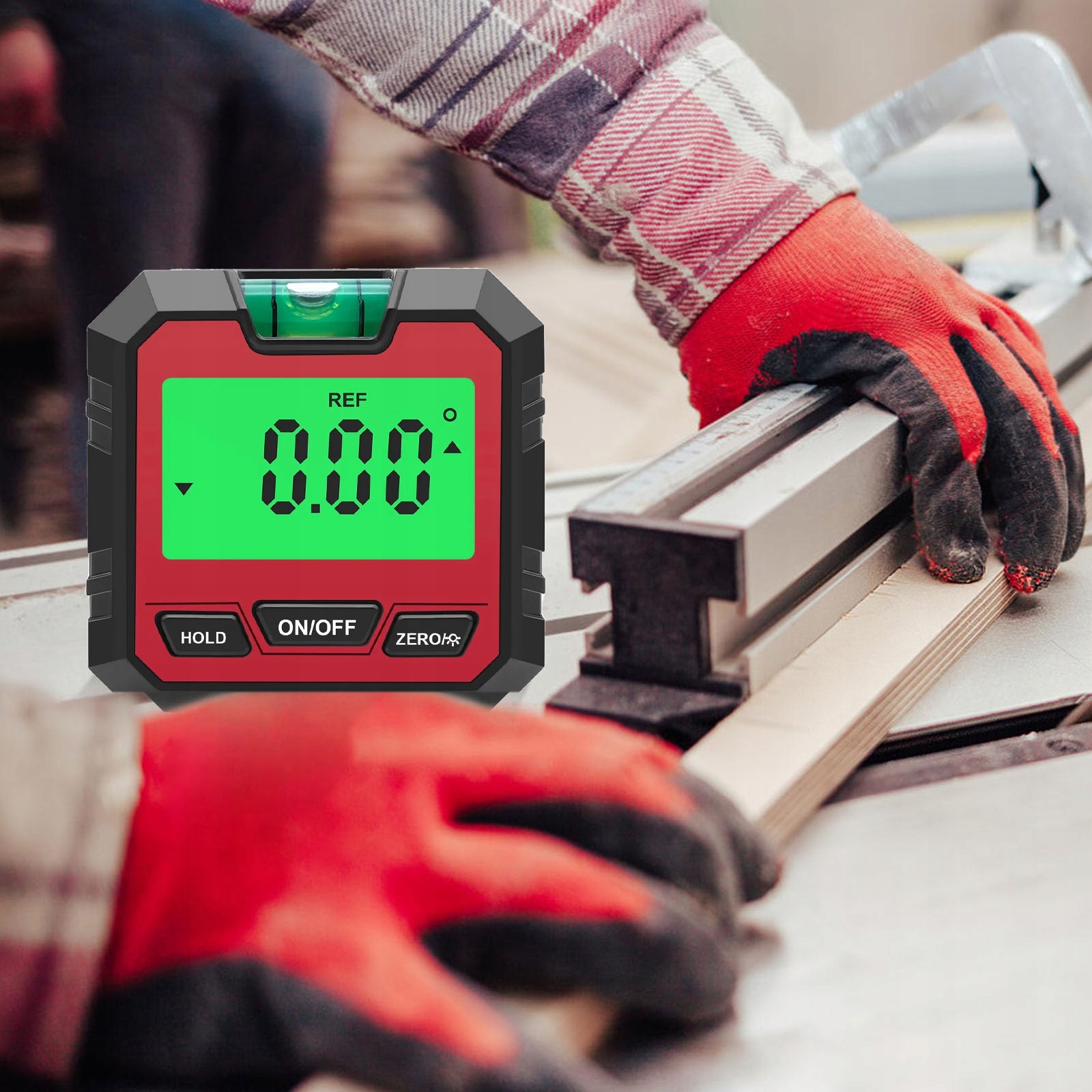 Цифровой транспортир с магнитным основанием, индикатор уровня, пузырьковый уровень, транспортир с ЖК-экраном 90°, инклинометр, мини-стусло для деревообработки, строительства, настольная пила, стены — красный