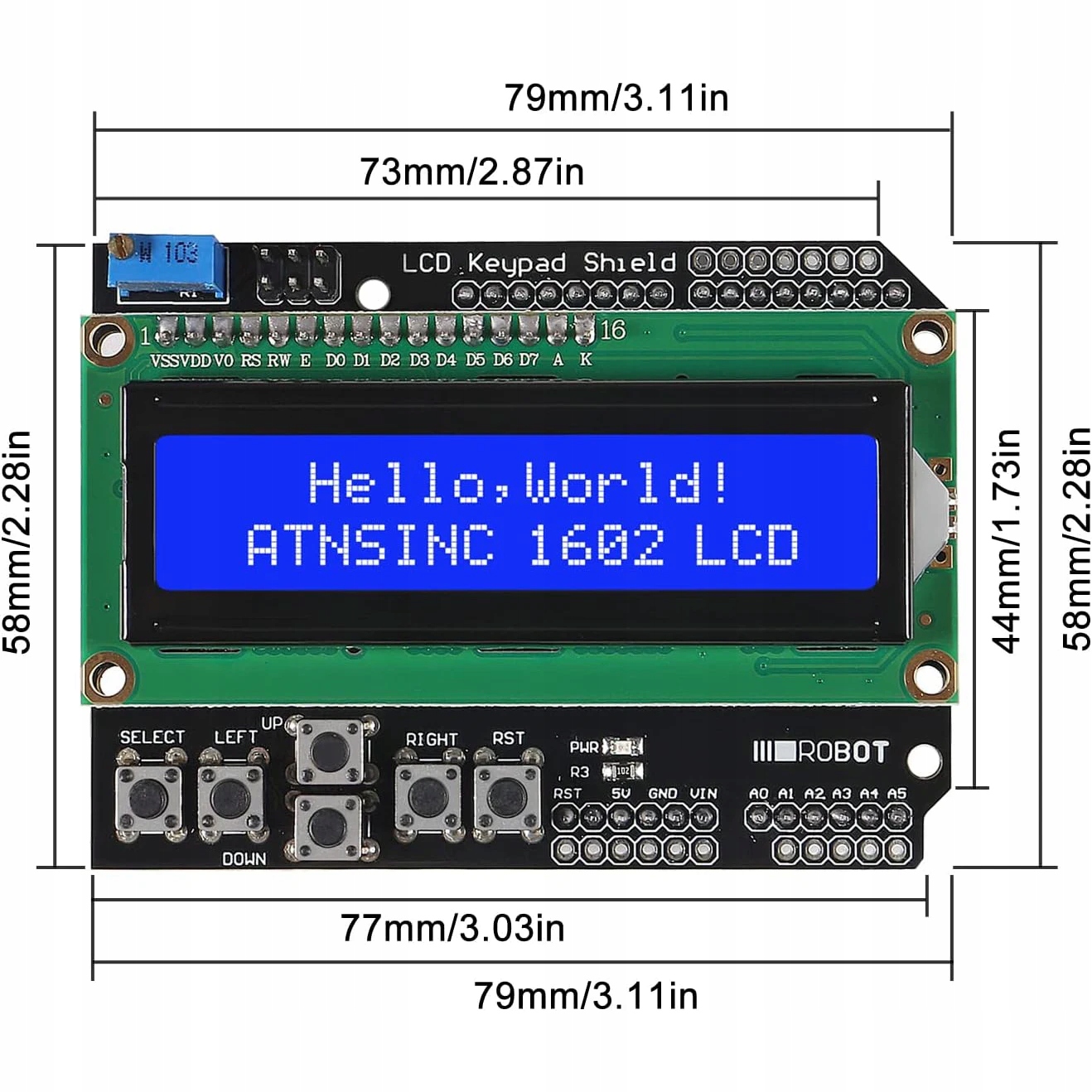 ⠀ • ЖК -экран : отображение с разрешением 16x2 (16 символов на 2 строки) позволяет отображать текстовые сообщения. - Просто подключите его к пластине. Встроенный потенциометр можно легко регулировать контраст дисплея