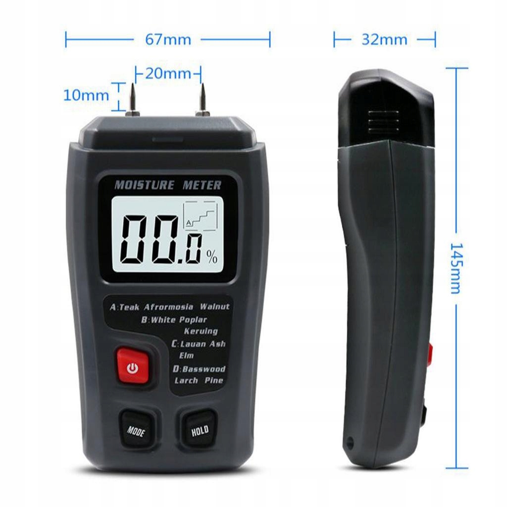 - Объем измерения влажности древесины: от 0 до 99,9%
