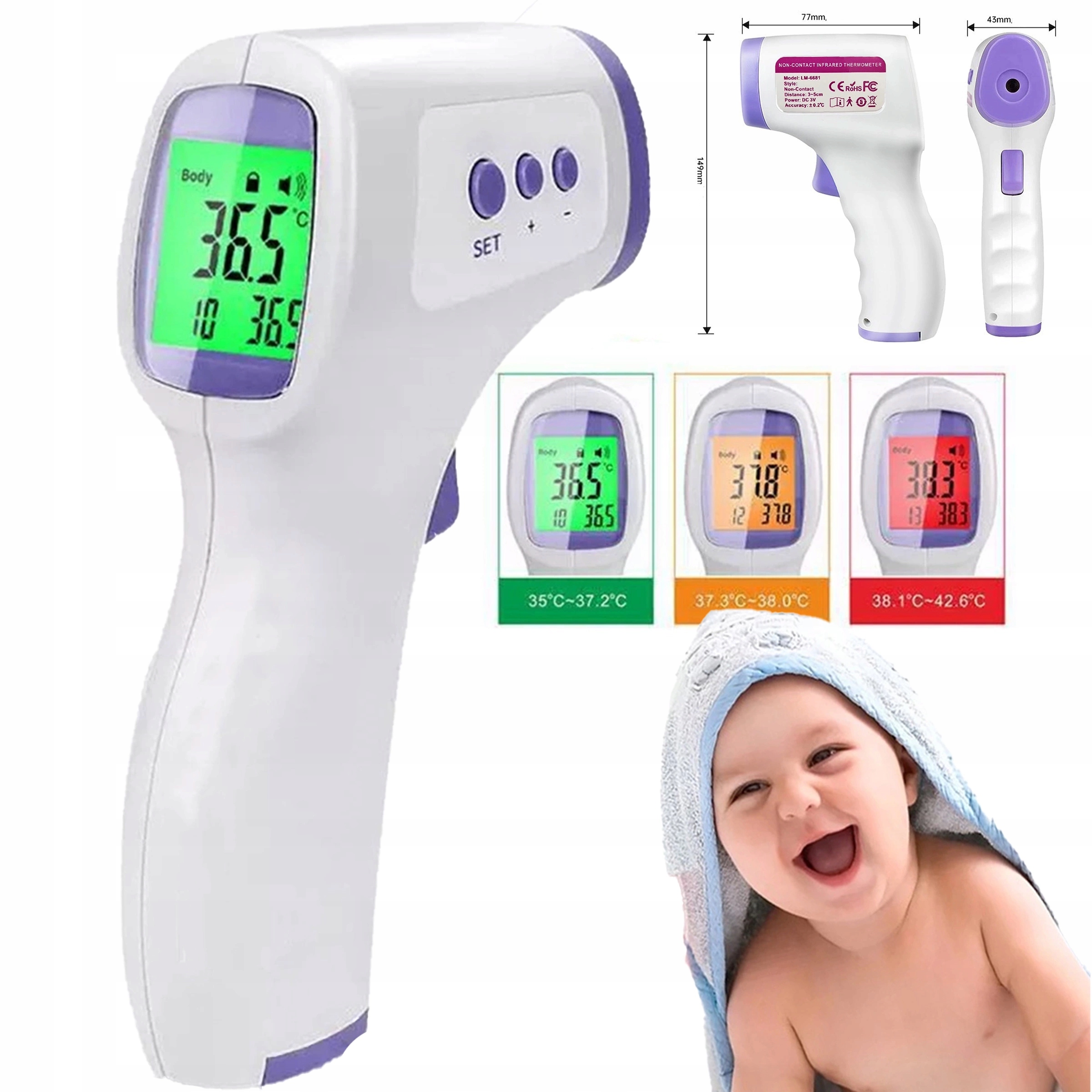 - ✅ Диапазон измерения тела : 32 ° C - 42,9 ° C