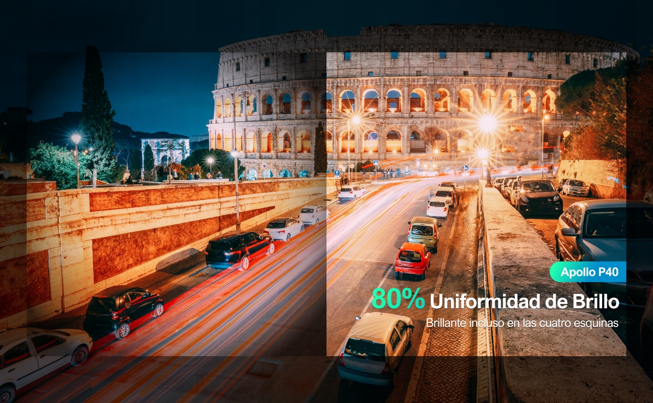 - Ultimea Apollo P40 обеспечивает собственное разрешение Full HD 1080p, яркости до 700 просветов ANSI, широкий спектр цветов и точное цветовое воспроизведение, оживляя каждую сцену. Благодаря однородности яркости на 80%, каждая деталь изображения видна и яркая, даже в углах