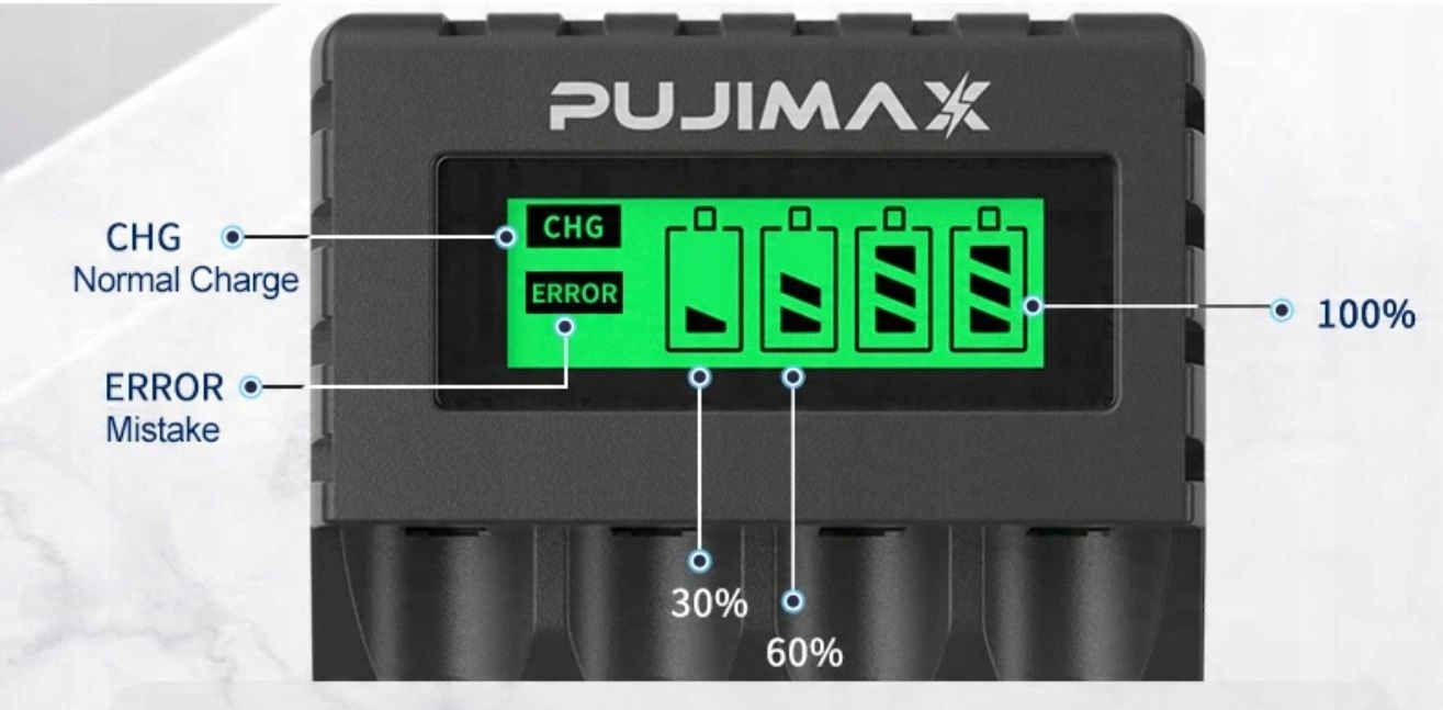 LCD Pujimax Зарядное устройство совместимо со всеми батареями AA и AAA (Ni-MH)