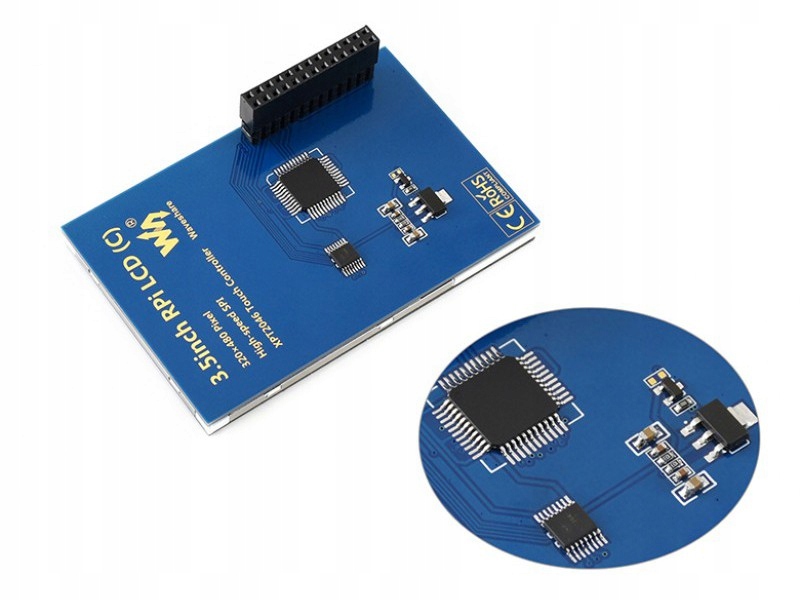 Сенсорный экран Waveshare, резистивный 3,5 дюйма для Raspberry Pi с разрешением 320 x 480 пикселей. Работает с Raspberry Pi версий 4, 3, 2, B+, Zero и Zero W через контакты GPIO и высокоскоростной интерфейс SPI 125 МГц.