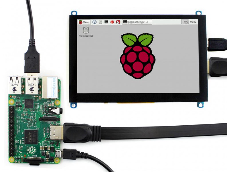 Чтобы запустить экран, подключите устройство к Raspberry Pi с помощью входящих в комплект кабелей: HDMI и microUSB. Разъем HDMI передает изображение, порт USB принимает данные от сенсорного интерфейса.