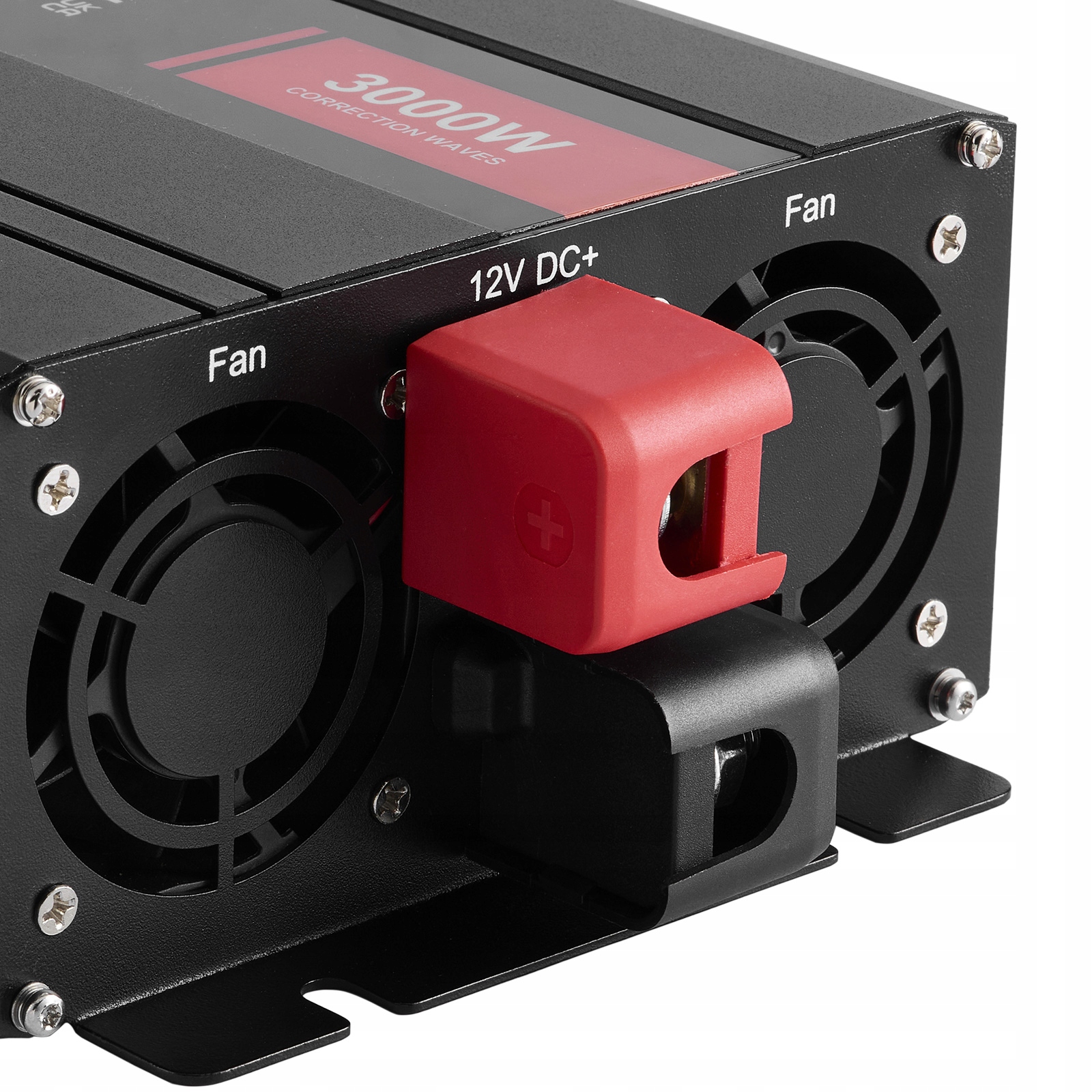 Модифицированный синусоидальный инвертор: от печатной версии с выходом 12 В постоянного тока на 230 В переменного тока. Максимальная мощность 3000 Вт, пиковая мощность 6000 Вт и эффективность до 88 % под нагрузкой. Наш инвертор является первым устройством для крупной бытовой техники, такой как холодильники, духовки, кофемашины, вентиляторы, фены, бытовая техника и т. д. (Общая мощность подключенных устройств) подключение: не превышайте номинальную мощность инвертора. При более высокой мощности будут подключены наши модели нагрузки)