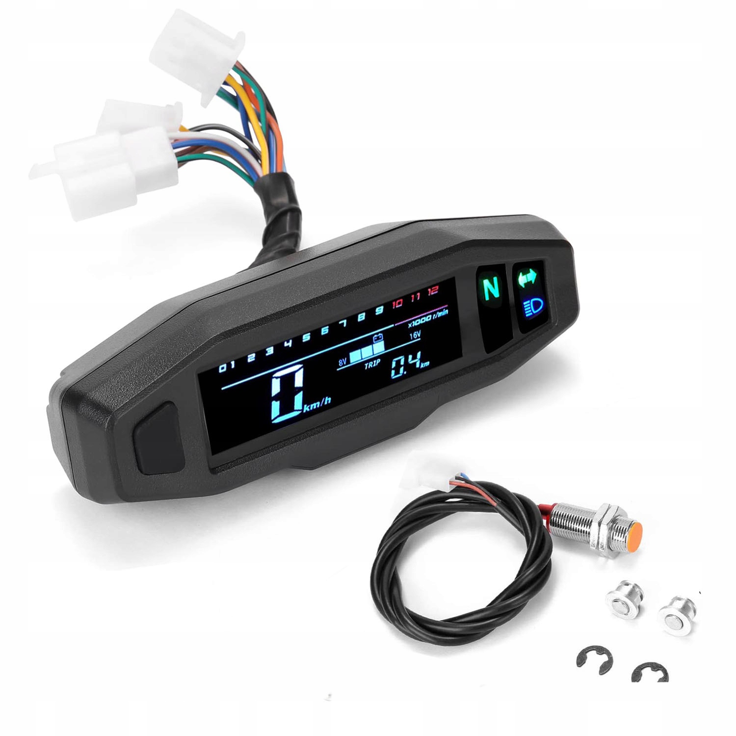 Несмотря на небольшой размер, мини-спидометр имеет четкий ЖК-дисплей, позволяющий легко считывать параметры. во время езды на мотоцикле, как днем, так и ночью. Кроме того, несмотря на свой меньший размер, спидометр предлагает множество дополнительных функций, таких как индикатор уровня топлива, индикатор оборотов и т. д.
