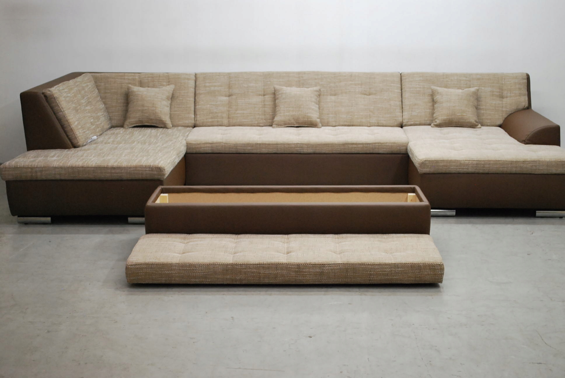 Диван абсолютно новый, изготовлен из высококачественной структурной ткани среднего переплетения, отличающейся устойчивостью к растяжению, и эко-кожи высочайшего качества (толстой и мягкой, очень похожей на натуральную кожу). Сиденье и спинка выполнены из светло-коричневой ткани, остальное – из экокожи шоколадного цвета. Остальное стоит на хромированных ножках. Угловой диван имеет функцию спального места.