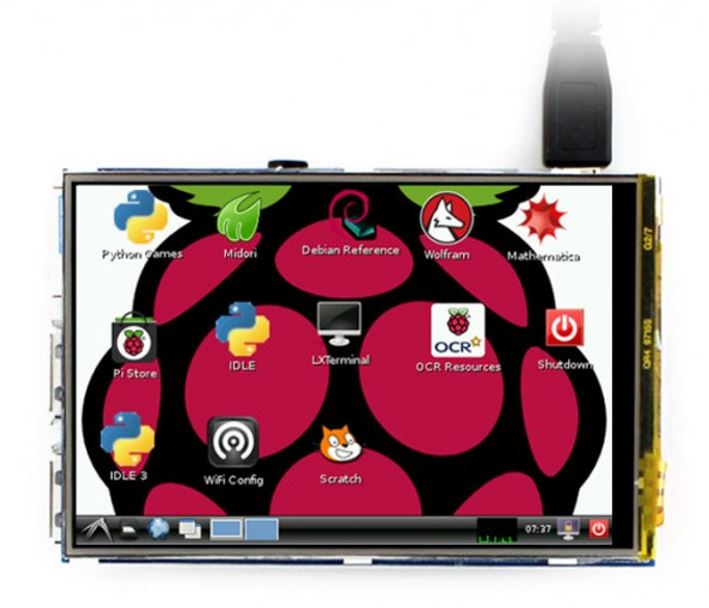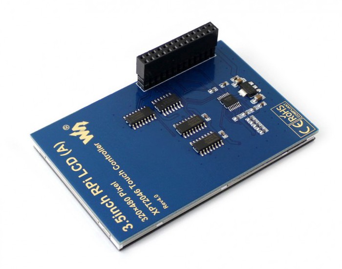 3,5-дюймовый резистивный сенсорный экран с разрешением 320 x 480 пикселей. Работает с Raspberry Pi версий 3B, 2B, B+ и Zero через разъем GPIO.